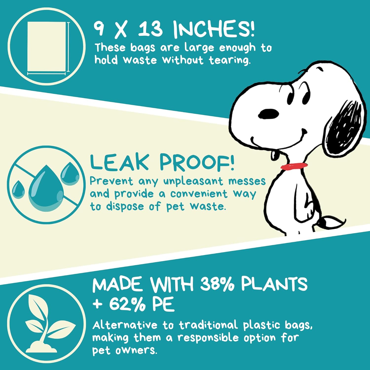 • Peanuts Themed Designs – Featuring adorable Peanuts characters, including Snoopy, these waste bags bring some fun to your dog-walking routine.