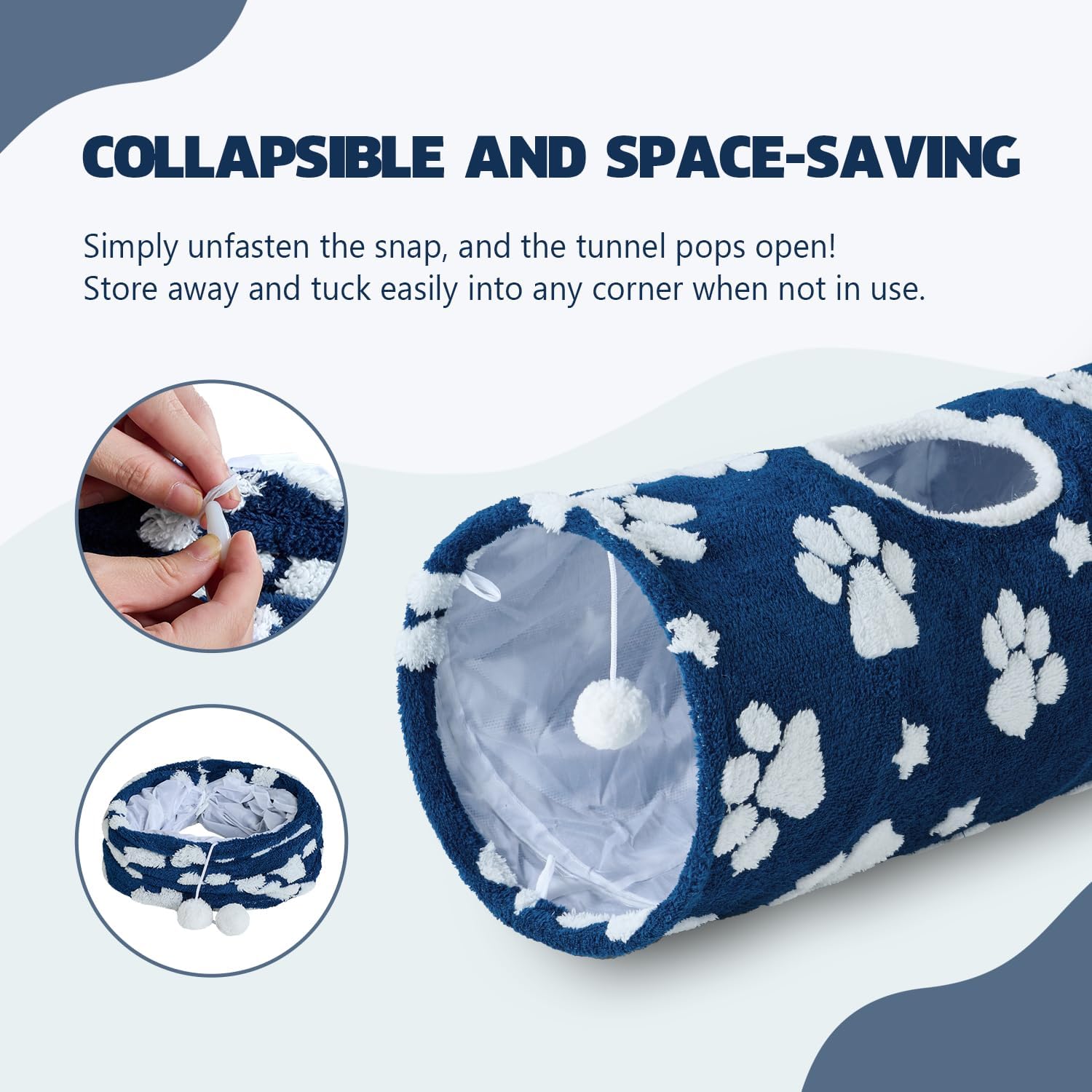 • Stylish Jacquard Pattern: Its stylish design with cute jacquard flower or paw patterns seamlessly complements your decor while inviting pets to explore, merging practicality with visual charm. Beyond being a cat tunnel, it doubles as a chic home accessory that add a cheerful, stylish touch to your home