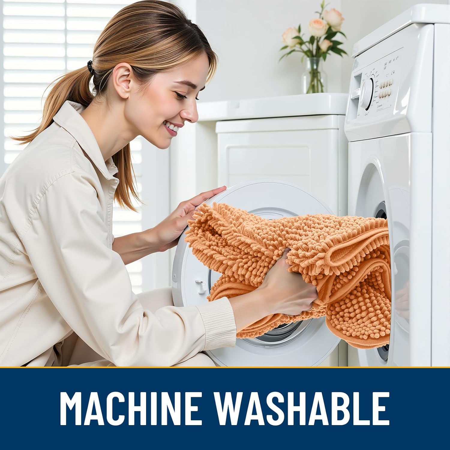 Smiry Dog Door Mat for Muddy Paws 36x24, Absorbs Moisture and Dirt Doormat, Non-Slip Washable Quick Dry Chenille Front Door Mat Indoor Entrance, Entryway Carpet for Inside Floor, Orange