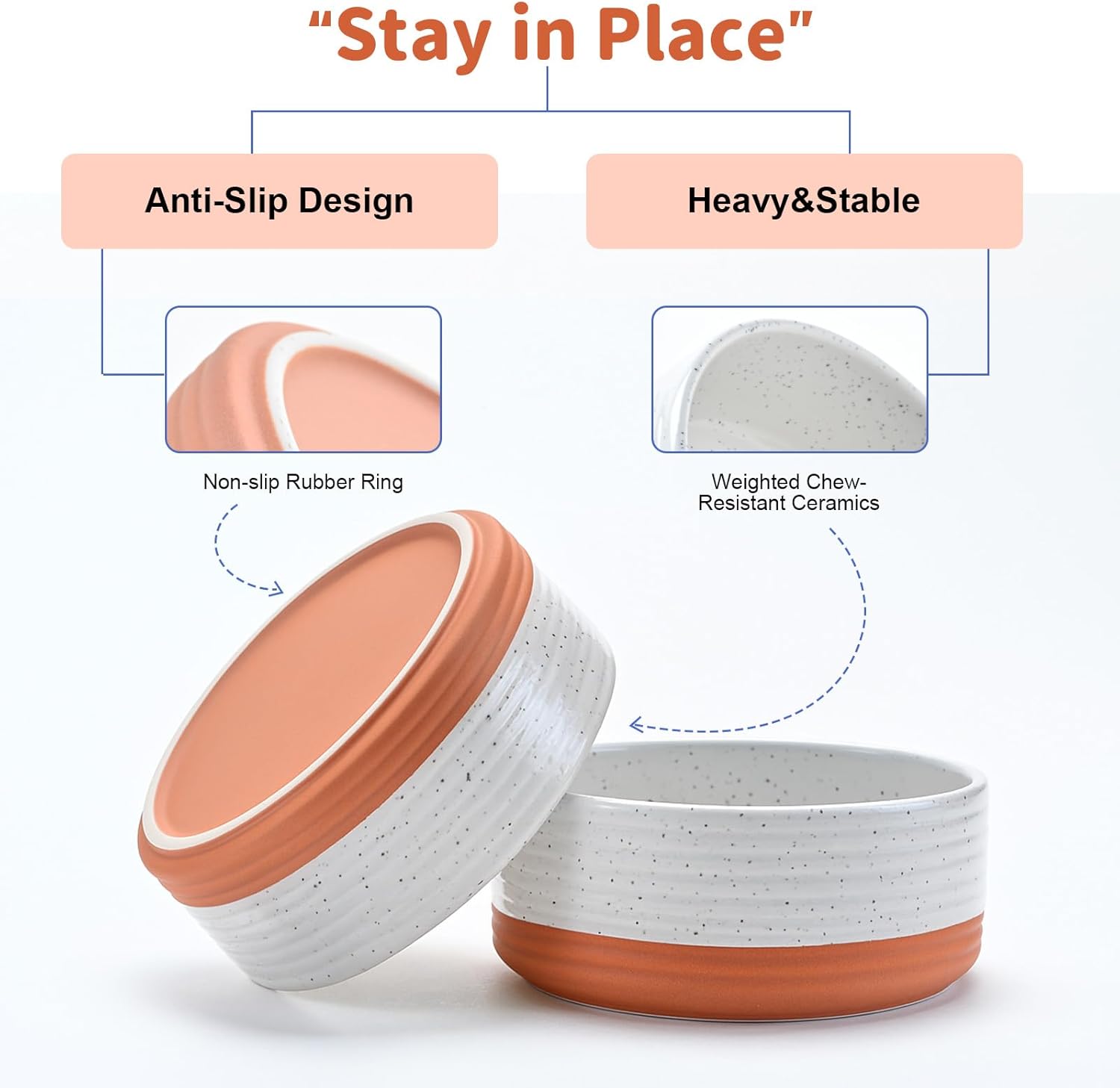 • Heavyweight, Chew‑Resistant Ceramic – Thick and Durable ceramic delivers the heft needed to prevent dragging, tipping, and the clanging noise common like other stainless bowls, while the smooth, lead‑free glaze discourages chewing and stands up to daily use