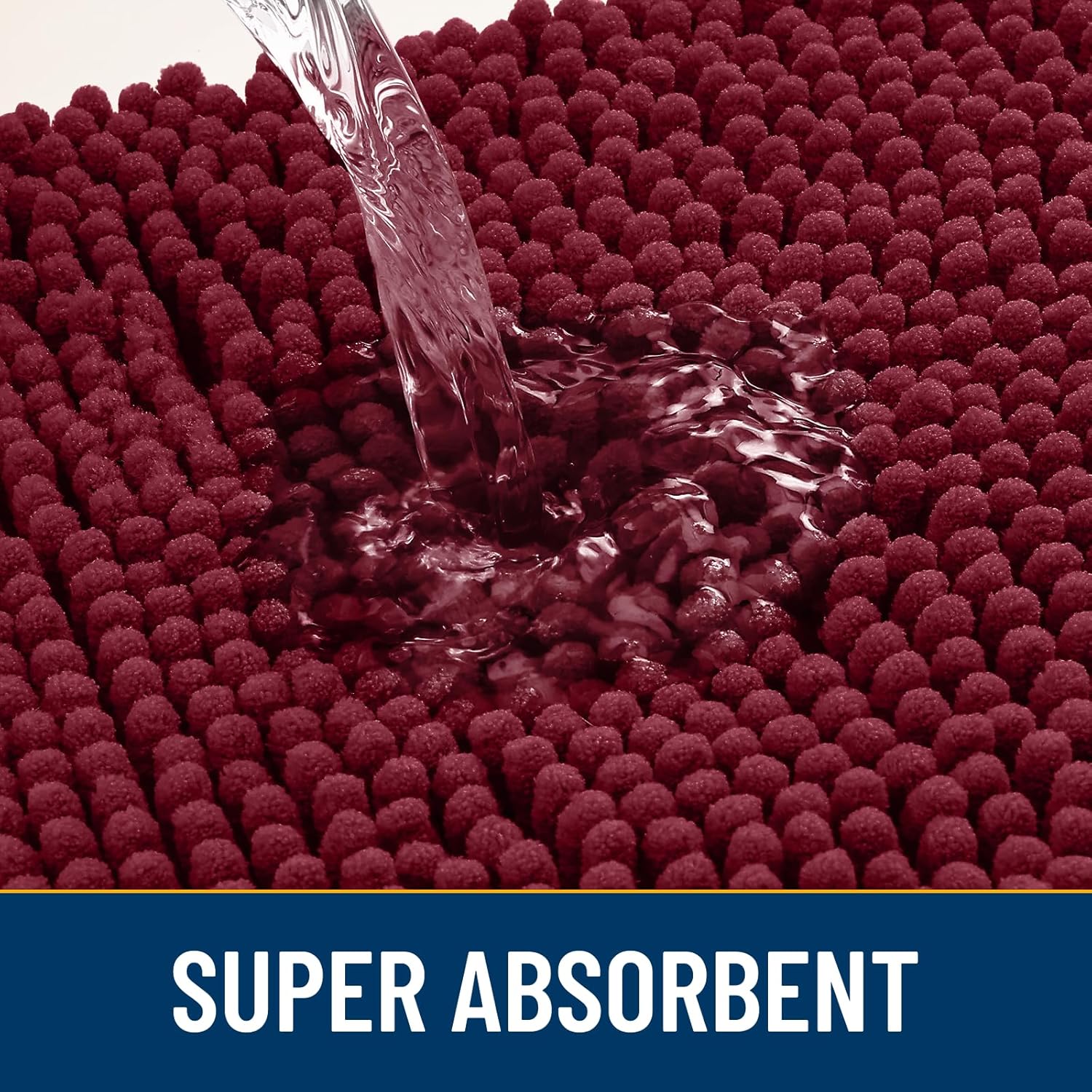 Smiry Dog Door Mat for Muddy Paws 47x24, Absorbs Moisture and Dirt Doormat, Non-Slip Washable Quick Dry Chenille Front Door Mat Indoor Entrance, Entryway Carpet for Inside Floor, Burgundy
