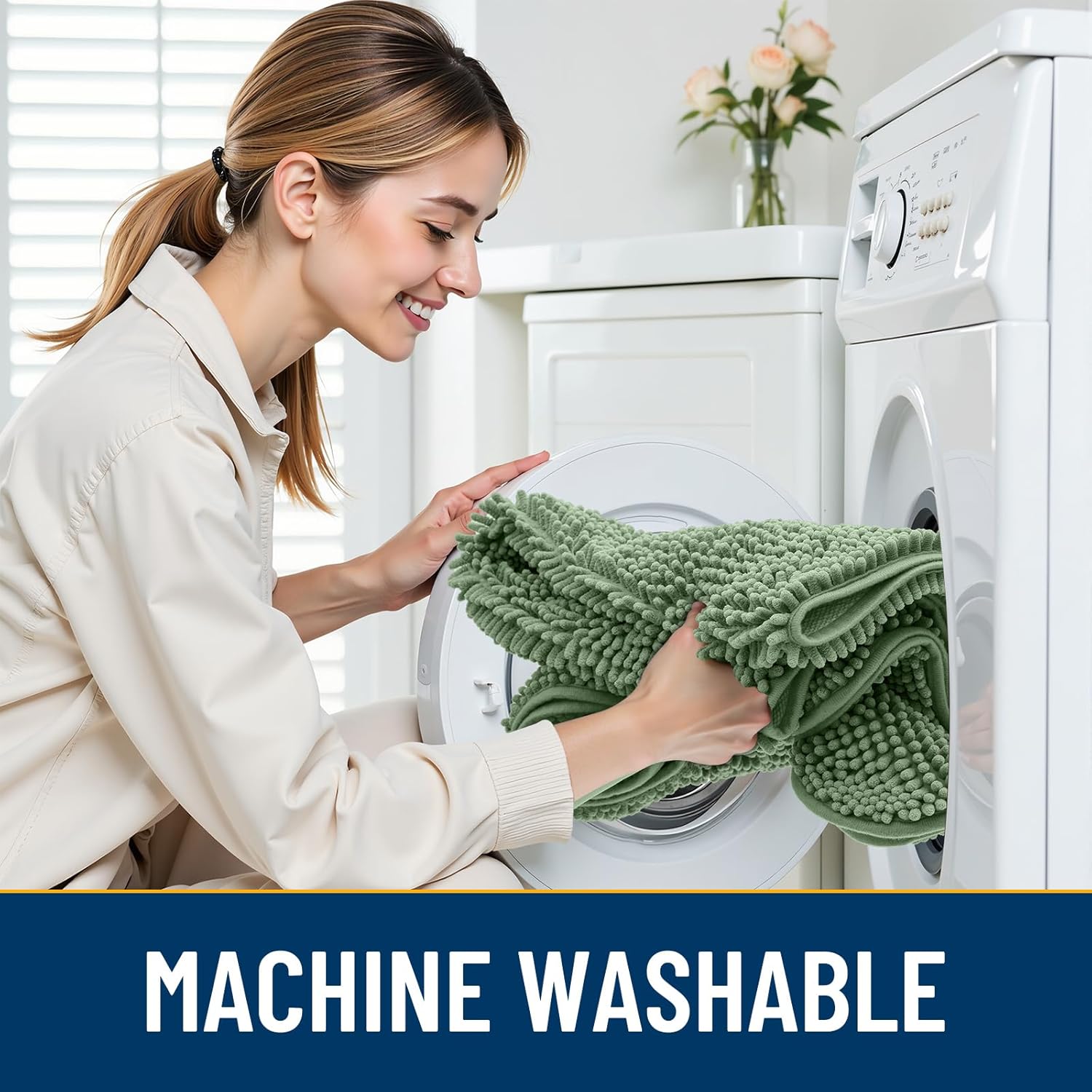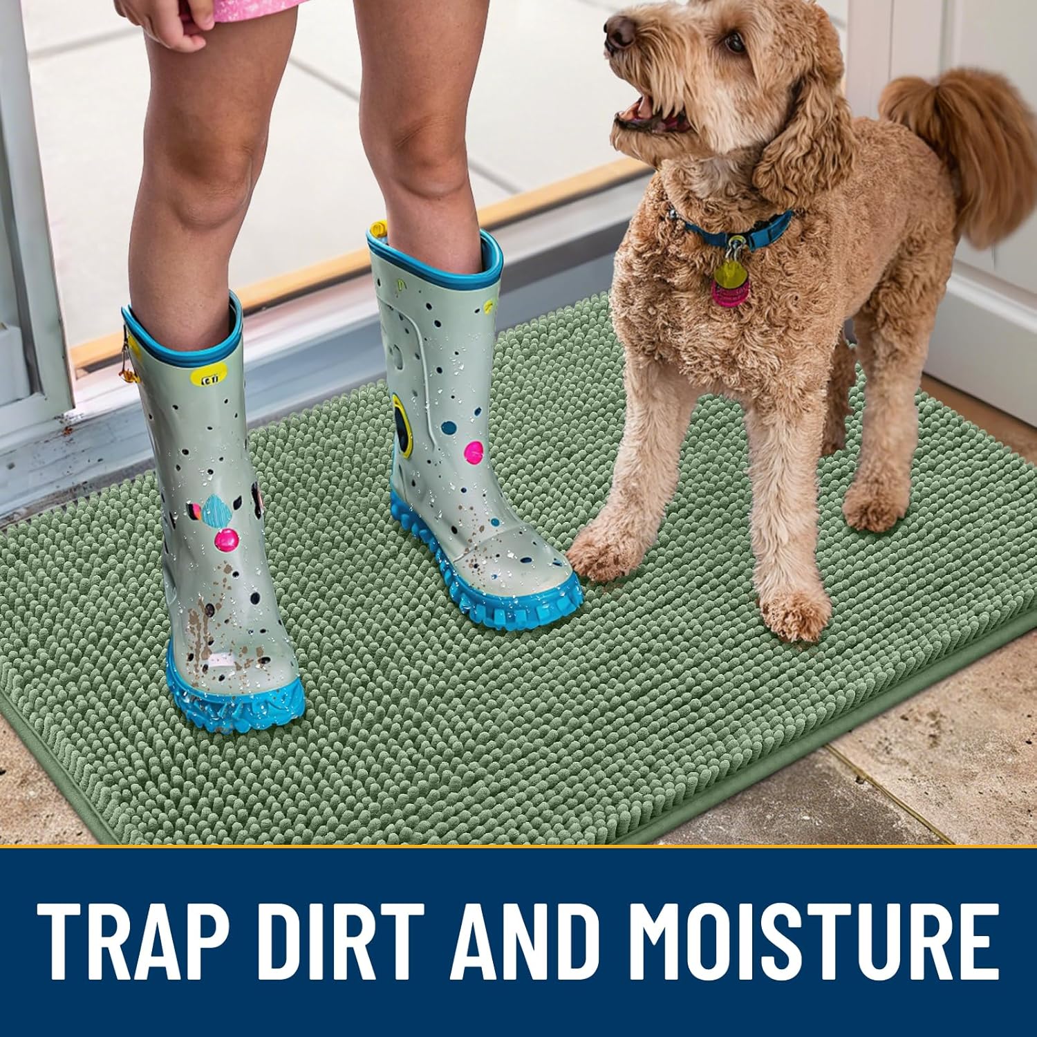Smiry Dog Door Mat for Muddy Paws 36x24, Absorbs Moisture and Dirt Doormat, Non-Slip Washable Quick Dry Chenille Front Door Mat Indoor Entrance, Entryway Carpet for Inside Floor, Olive Green