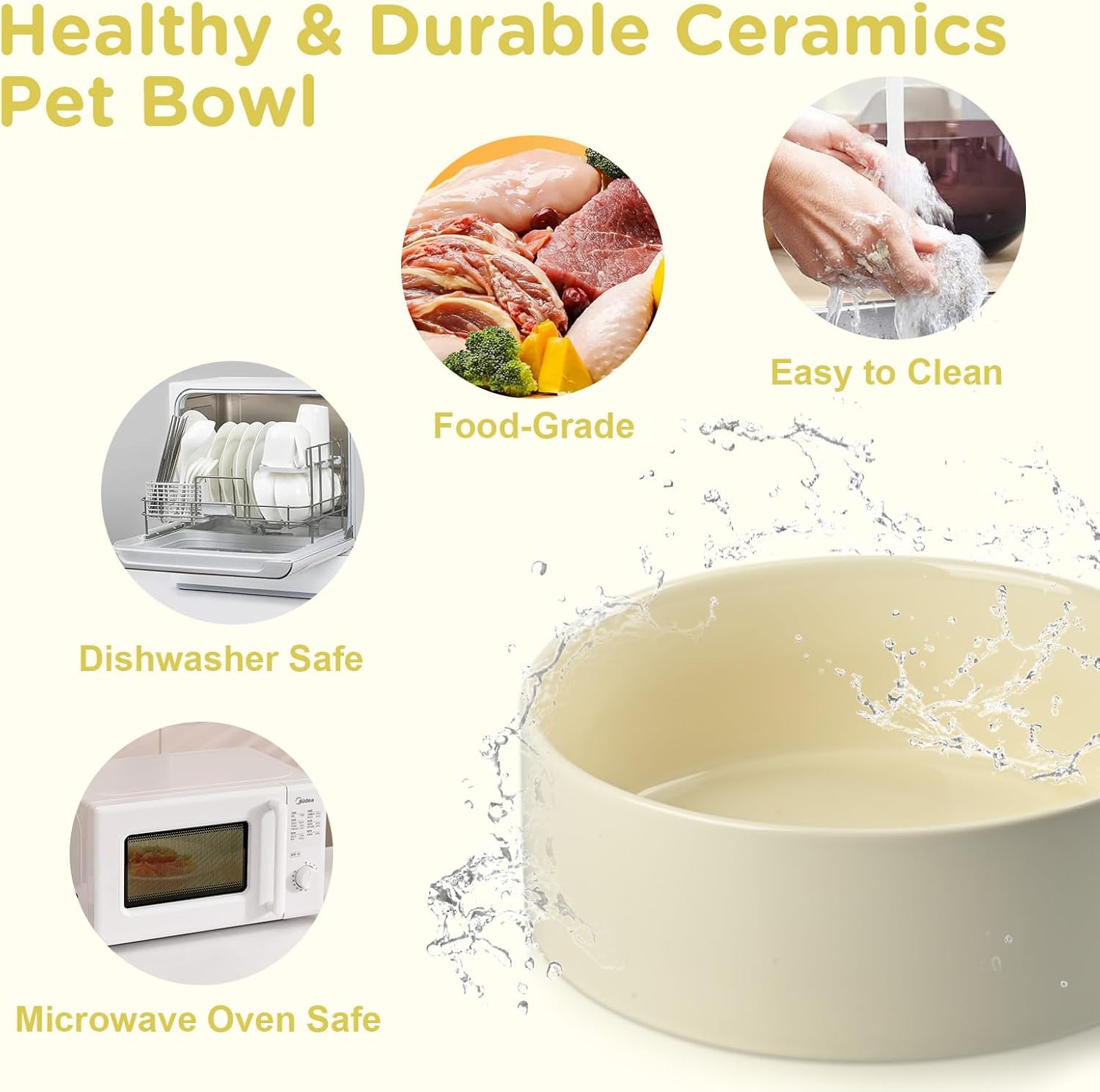 • Lead-Free Ceramic Pet Bowls - 6.1" Ceramic Dog Bowls with 28.7 OZ Capacity Fired at high temperature with a food‑grade glaze that contains zero lead or cadmium, these non‑porous bowls help keep meals tasting fresh, rinse clean in seconds, and both MICROWAVE SAFE and DISHWASHER SAFE