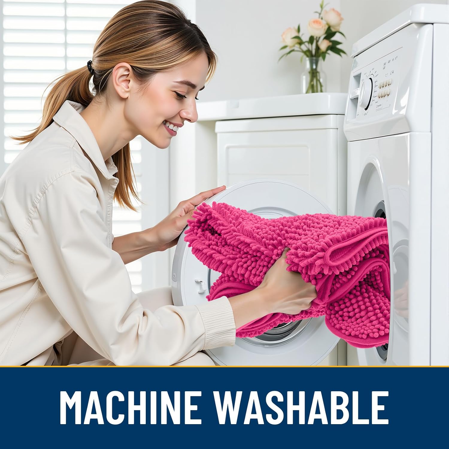 Smiry Dog Door Mat for Muddy Paws 48x30, Absorbs Moisture and Dirt Doormat, Non-Slip Washable Quick Dry Chenille Front Door Mat Indoor Entrance, Entryway Carpet for Inside Floor, Hot Pink
