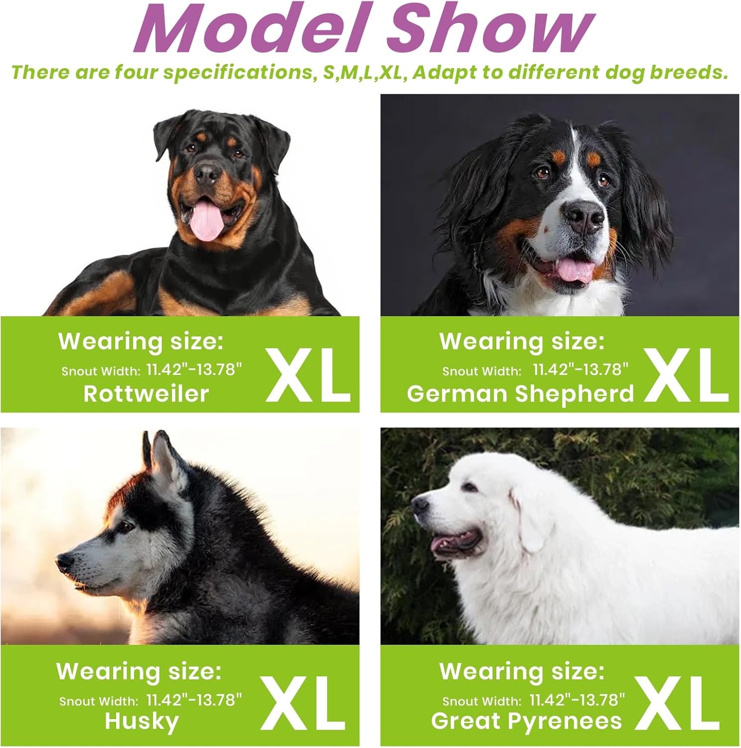 • PLEASE MEASURE BEFORE BUYING:Measure both snout circumference and snout length before purchasing. If your dog's snout length exceeds the size range by about 1 inch, choose the next size up. For long-snout breeds like Dobermans, make sure the snout length fits as well.