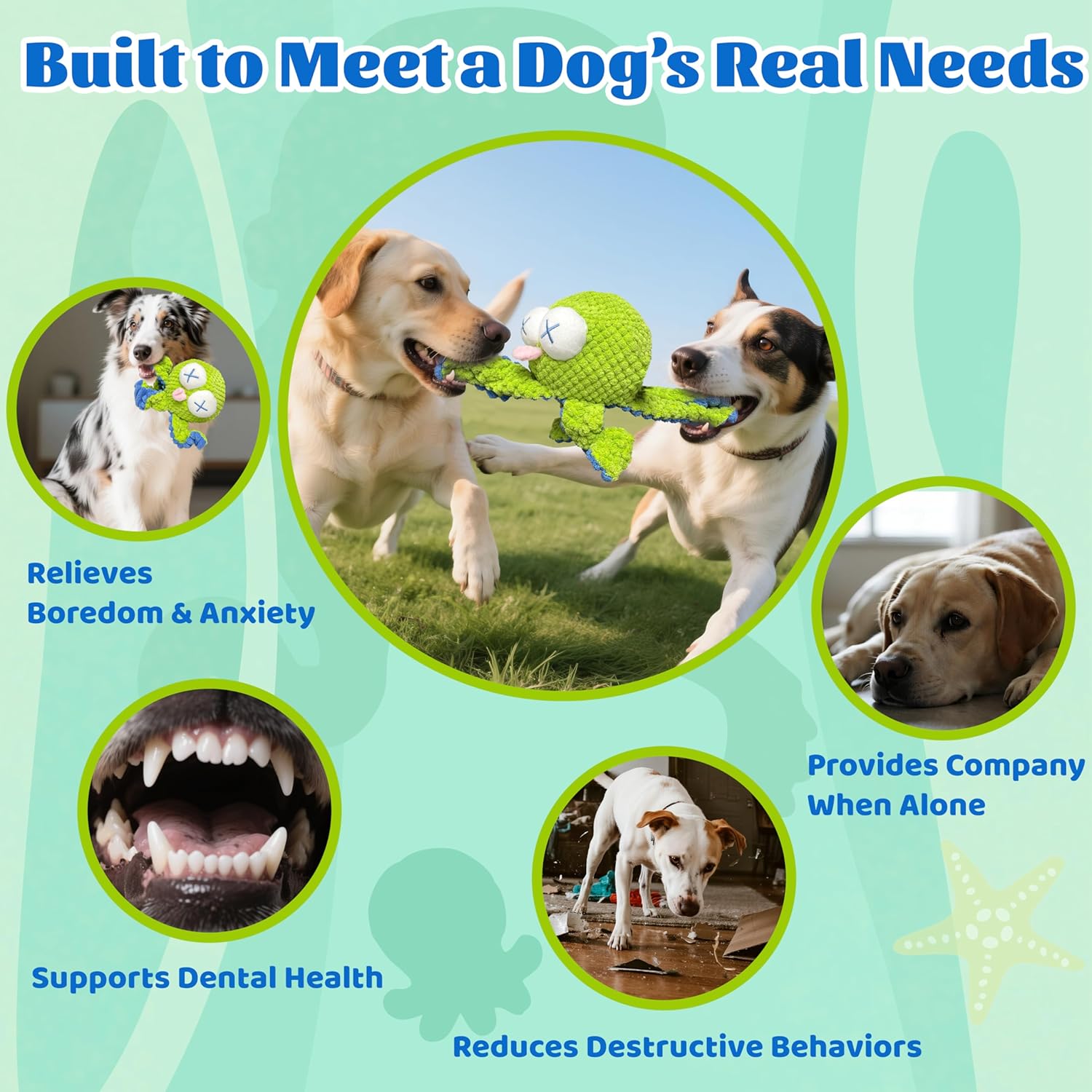 • Durable Tug of War Dog Toys: Crafted from soft yet durable fabric with reinforced stitching, this interactive octopus toys withstands tugging and biting, and features a removable, machine-washable cover for easy cleaning and lasting freshness.