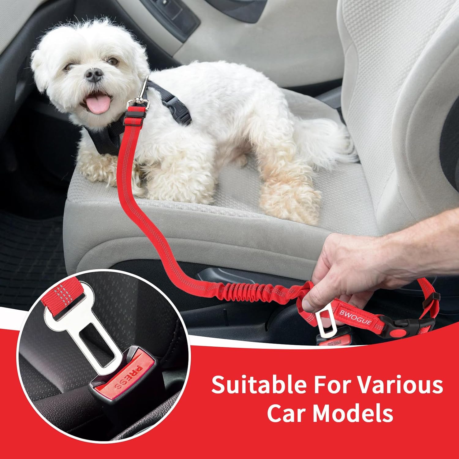 • Multifunction & Easy to Use: For effective restraint and protection during travel. The dog seatbelt can be hung on the seat back rest or inserted separately in the seat belt buckle, dog car seat cover. Equipped with elastic rope, can be used as a dog leash, so that you hold the dog partner safe walk