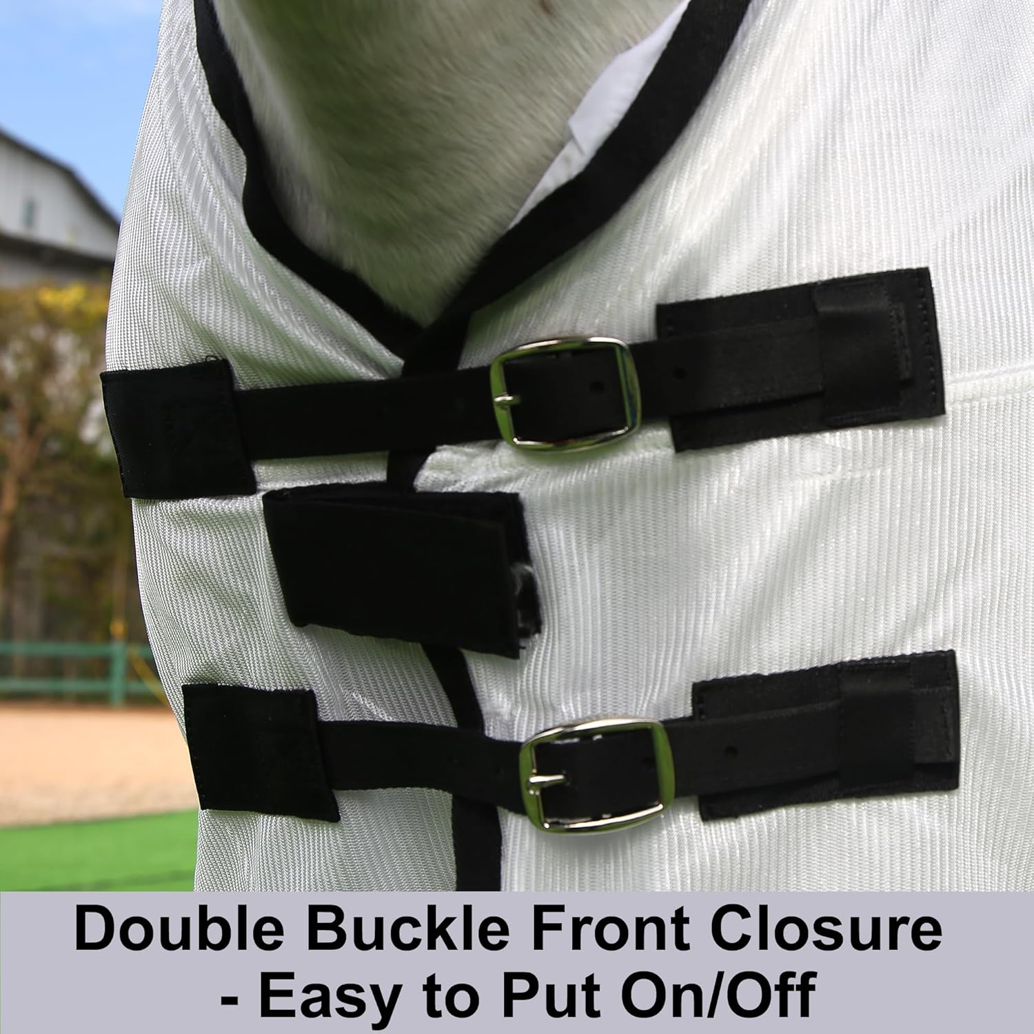 • 【DURABILITY&SECURITY】Double buckle front closure, easy to adjust and secure. Adjustable low cross surcingles keep the flysheet in place. Adjustable and removable leg straps for a comfortable fit. All hardware of the summer sheet is crafted from rust-resistant stainless steel for long lasting