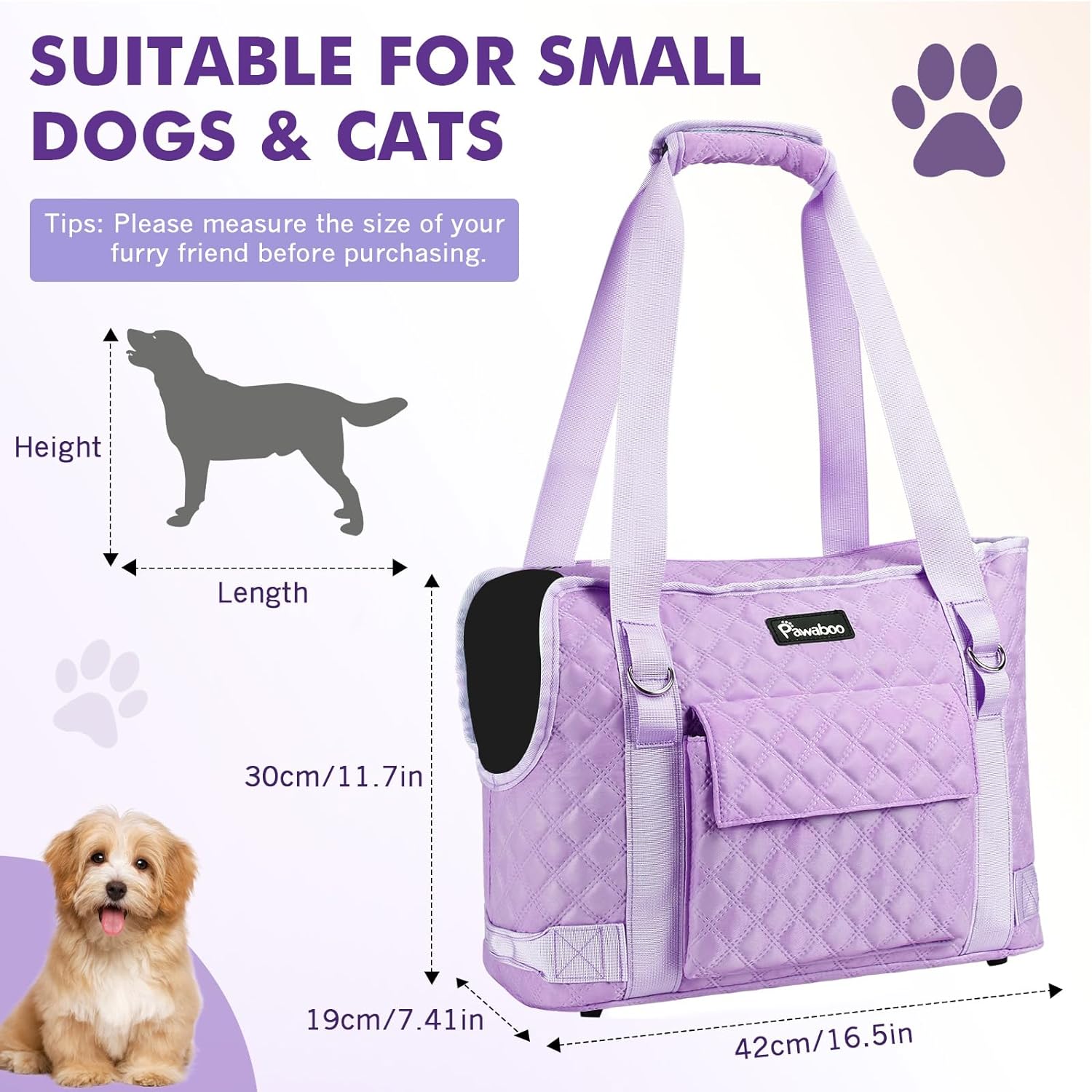 Pawaboo Dog Purse Carrier for Small Dogs with Pocket, Lightweight Dogs and Puppies Tote Bag Carrier, Dog Carriers Soft Sided for Puppy Cat Rabbit, Shopping Travel Puppy Carriers Under 11 LBS, Purple