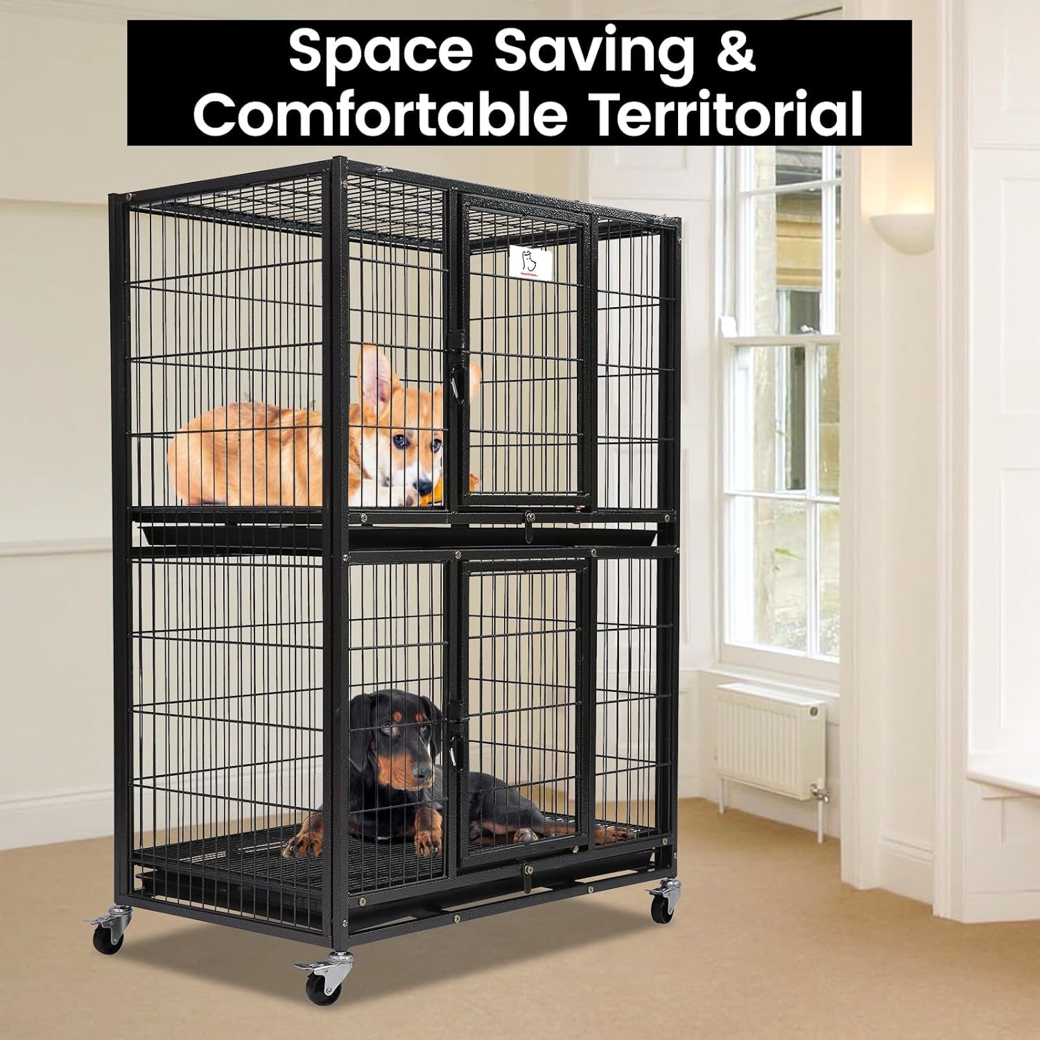 • Easy to Move Around: Equipped with Four x 360° rotatable and lockable casters, this heavy duty dog crate offers unparalleled ease of movement. Easily reposition it anywhere in your home without sacrificing stability, and stay stable where you want it to be placed, making it perfect for cleaning and rearranging spaces