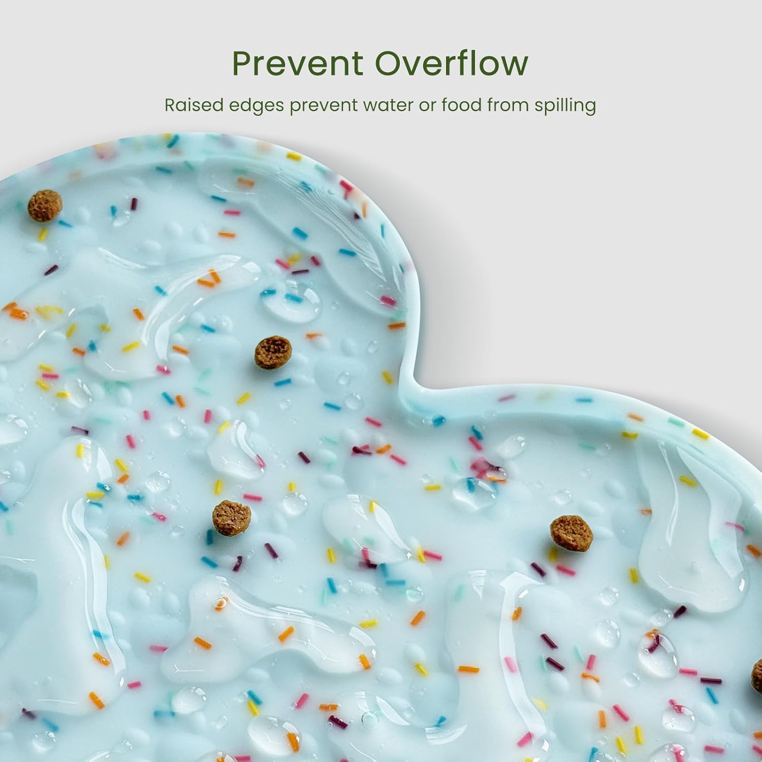 • Raised Edge - The high edge of this feeder mat keeps food and water within the tray and prevents spillage onto a clean floor. Keep your living space tidy and clean, say goodbye to messy floors, you just need to clean the dog bowl mat regularly.