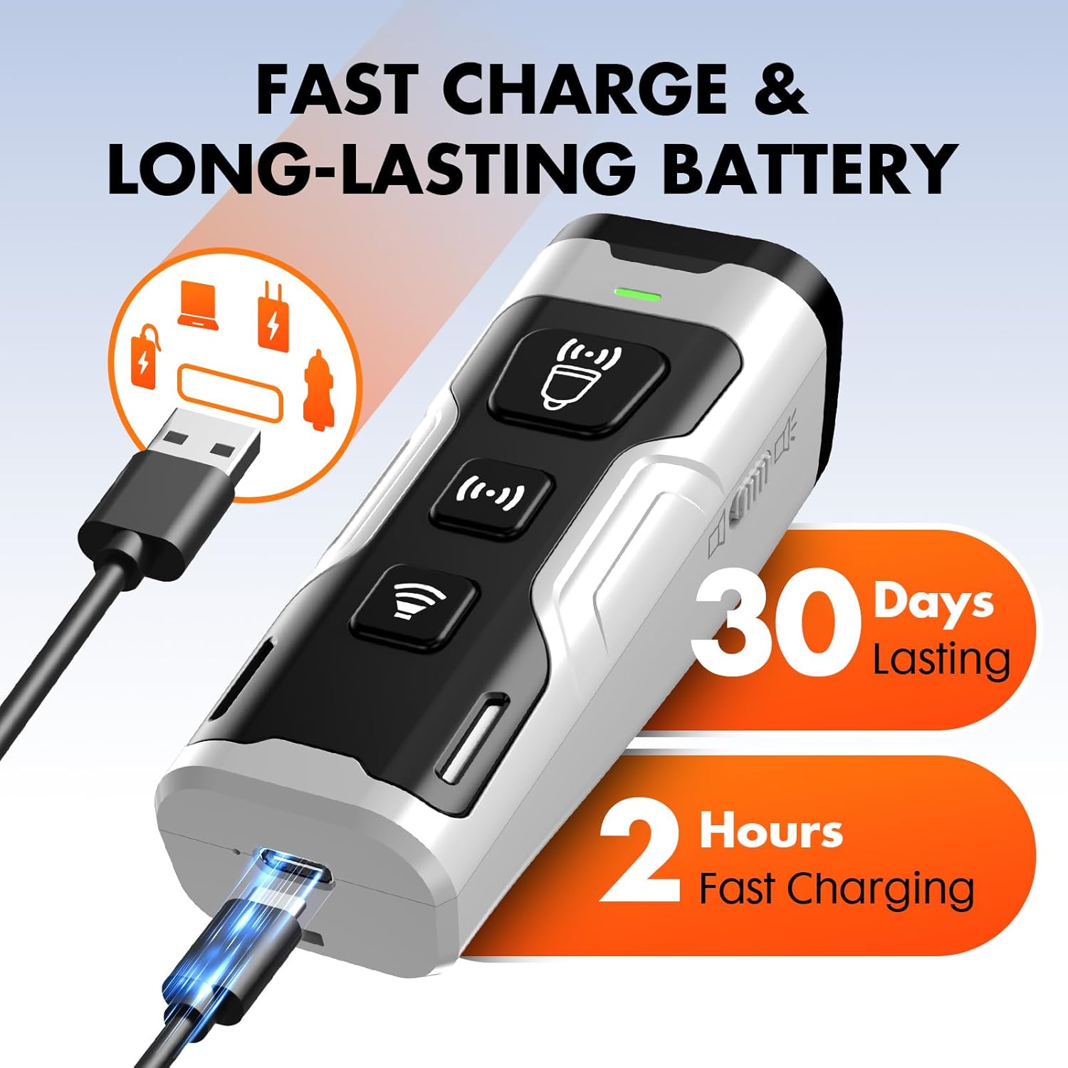 - Fast Charge & Long Battery Life – Always Ready for Training:With a Type-C fast charging port, our dog bark deterrent device reaches a full charge in just 2 hours and provides up to 30 days of regular use on a single charge, along with 180 days of standby time. Whether you're correcting anti barking behavior or training your dog in public places, you’ll always be prepared for any situation. Forget the hassle of frequent charging and enjoy reliable, long-term barks no more support