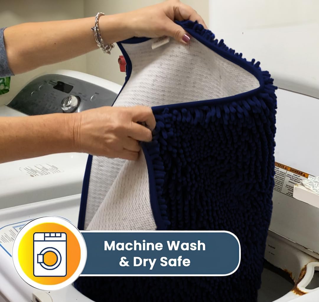 • [ ULTRA MOISTURE ABSORBENT ] Designed with a thick layer of plush 1-inch chenille that soaks up to 5X its weight for maximum water absorption ideal for trapping liquid from shower floors and wet spills from pets.