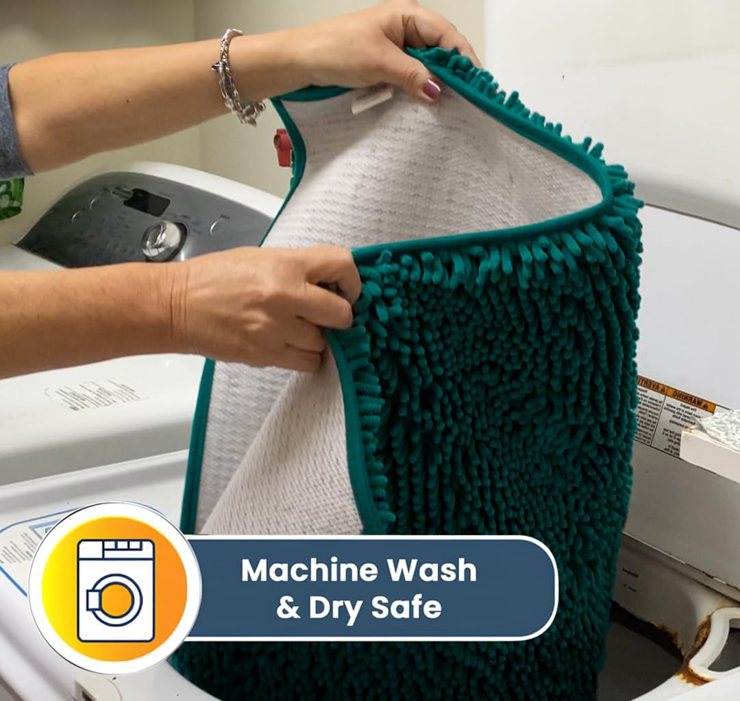 • [ ULTRA MOISTURE ABSORBENT ] Designed with a thick layer of plush 1-inch chenille that soaks up to 5X its weight for maximum water absorption ideal for trapping liquid from shower floors and wet spills from pets.
