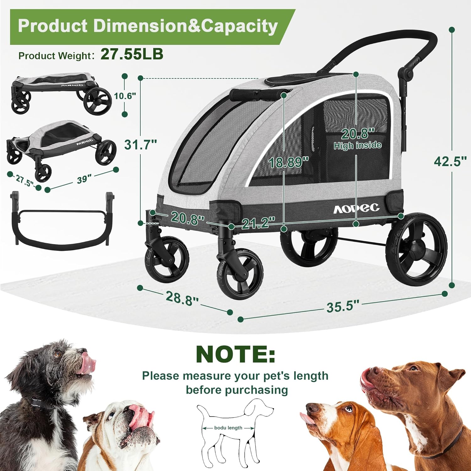 • 【BITE-RESISTANT FABRIC】AOPEC large dog stroller uses 600D cationic fabric, which is soft and comfortable, can withstand pet bites, and ensure that the stroller remains in good condition. We always put the safety and comfort of your pet first.