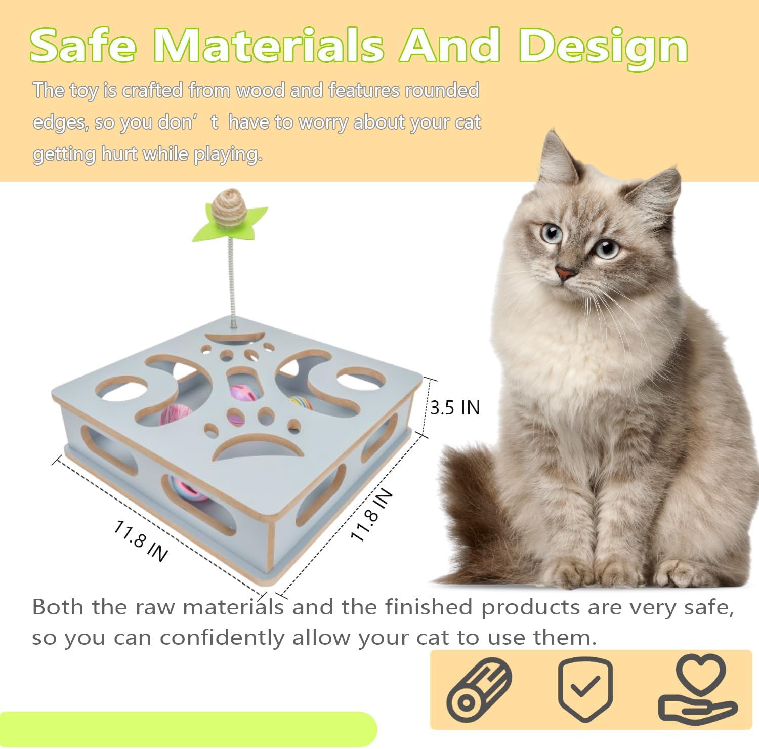 • [Safe Materials and Design] Made from durable wood composite board with no added chemicals, this toy is built to last. Its smooth surface and rounded corners ensure your cat stays safe while playing. The rustic design not only provides fun for your cat but also adds a charming touch to your home decor.