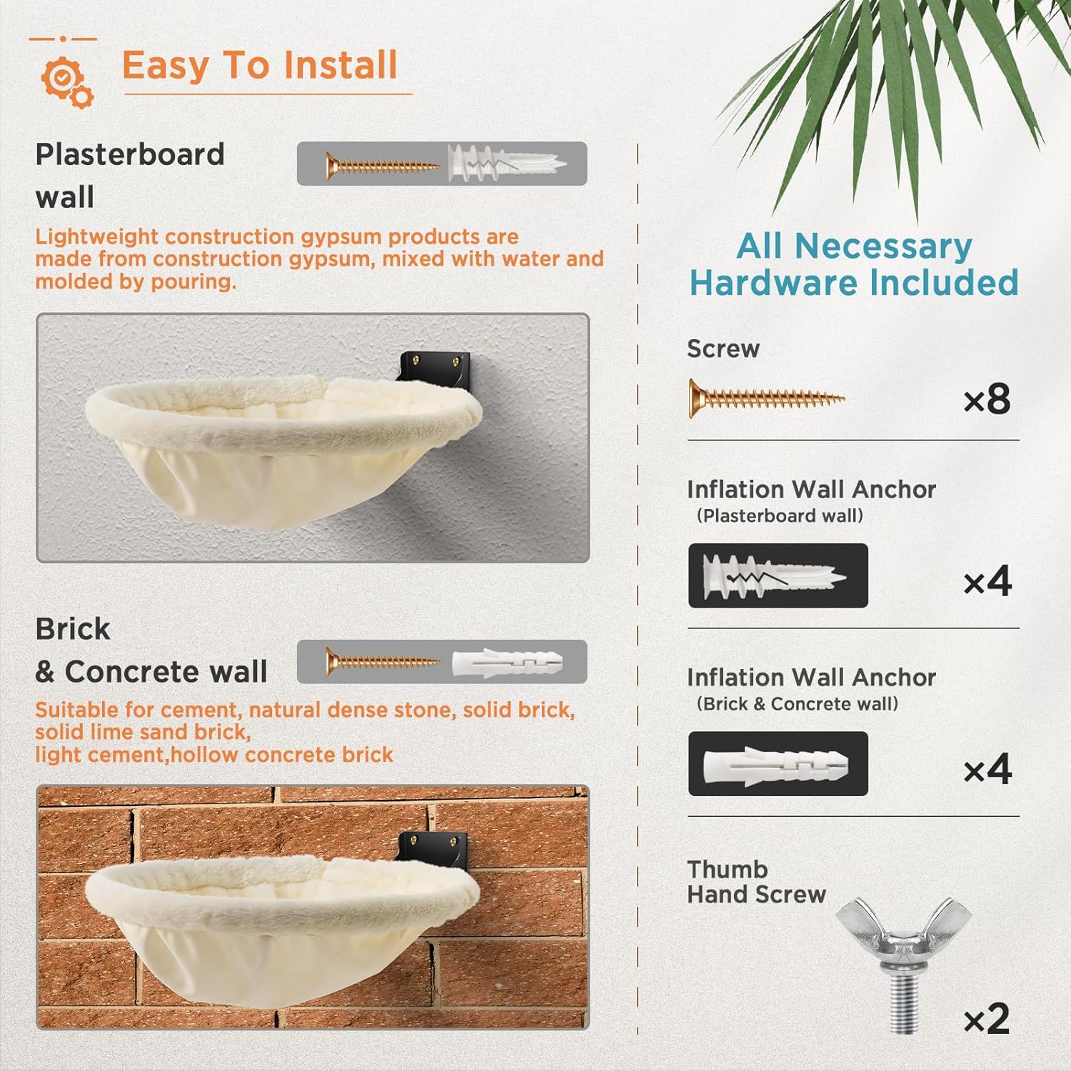 • Easy to Disassemble and Clean: JUNSPOW's Wall Mounted Cat Hammock is a removable design with a detailed installation manual that makes assembly and disassembly simple. The fabric cover can be quickly removed for cleaning and is easily cleaned with a mild detergent.