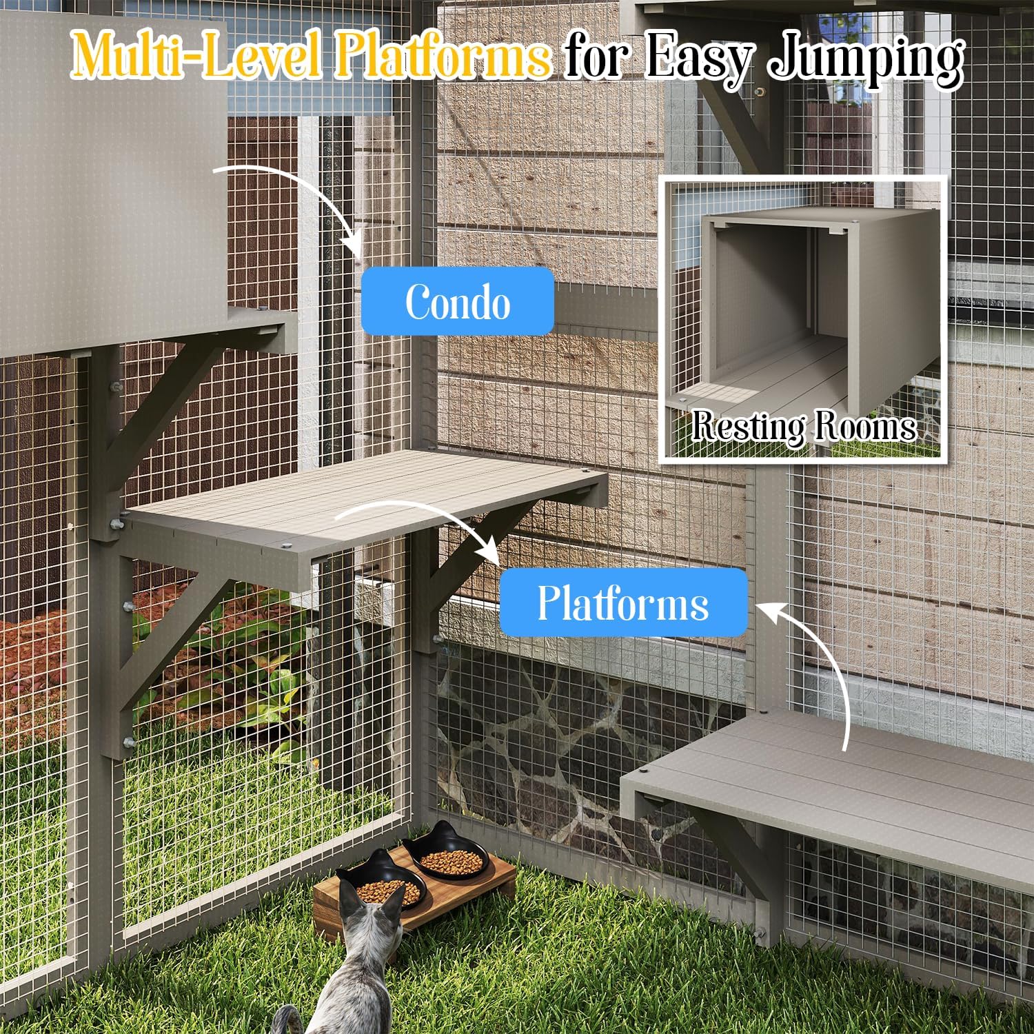• 【Spacious Walk-In Cat Haven】 Featuring a 57" tall full-size door, our large catio lets adults walk in comfortably to feed, clean, and play. With an overall height of 71", it offers ample space for both you and your cats. Enjoy closer bonding with your cats while keeping care routines simple and accessible every day.