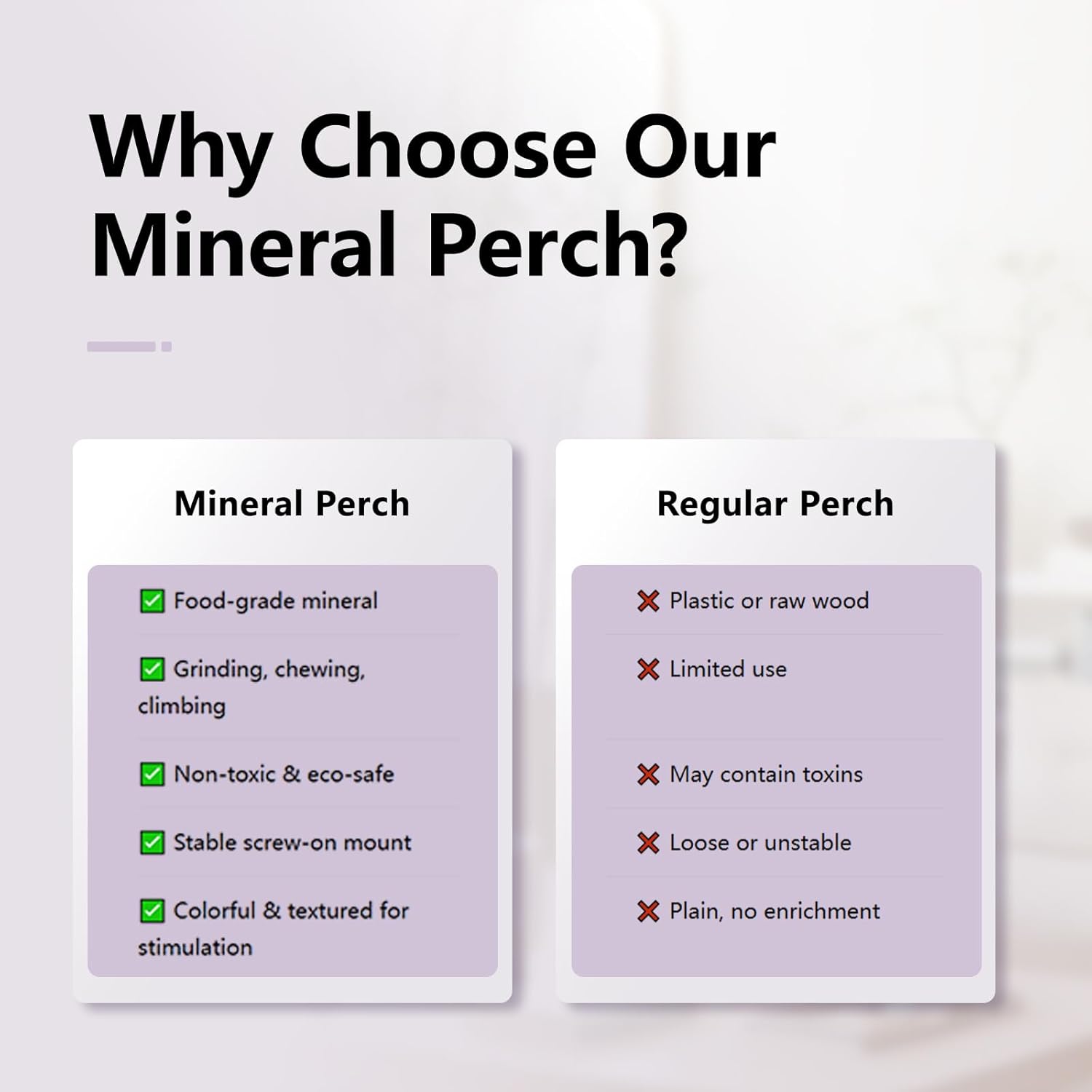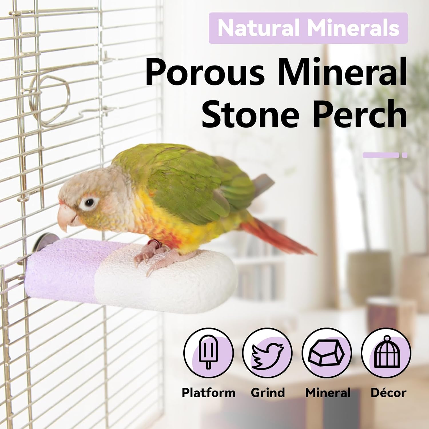 • ✅ 100% Natural & Safe Materials ---- Crafted from 100% porous natural minerals and food-grade coloring, our bird perch toys are completely safe for your feathered friend. Colors won’t fade even after washing. A trusted choice for parrot cage accessories that prioritize pet safety.