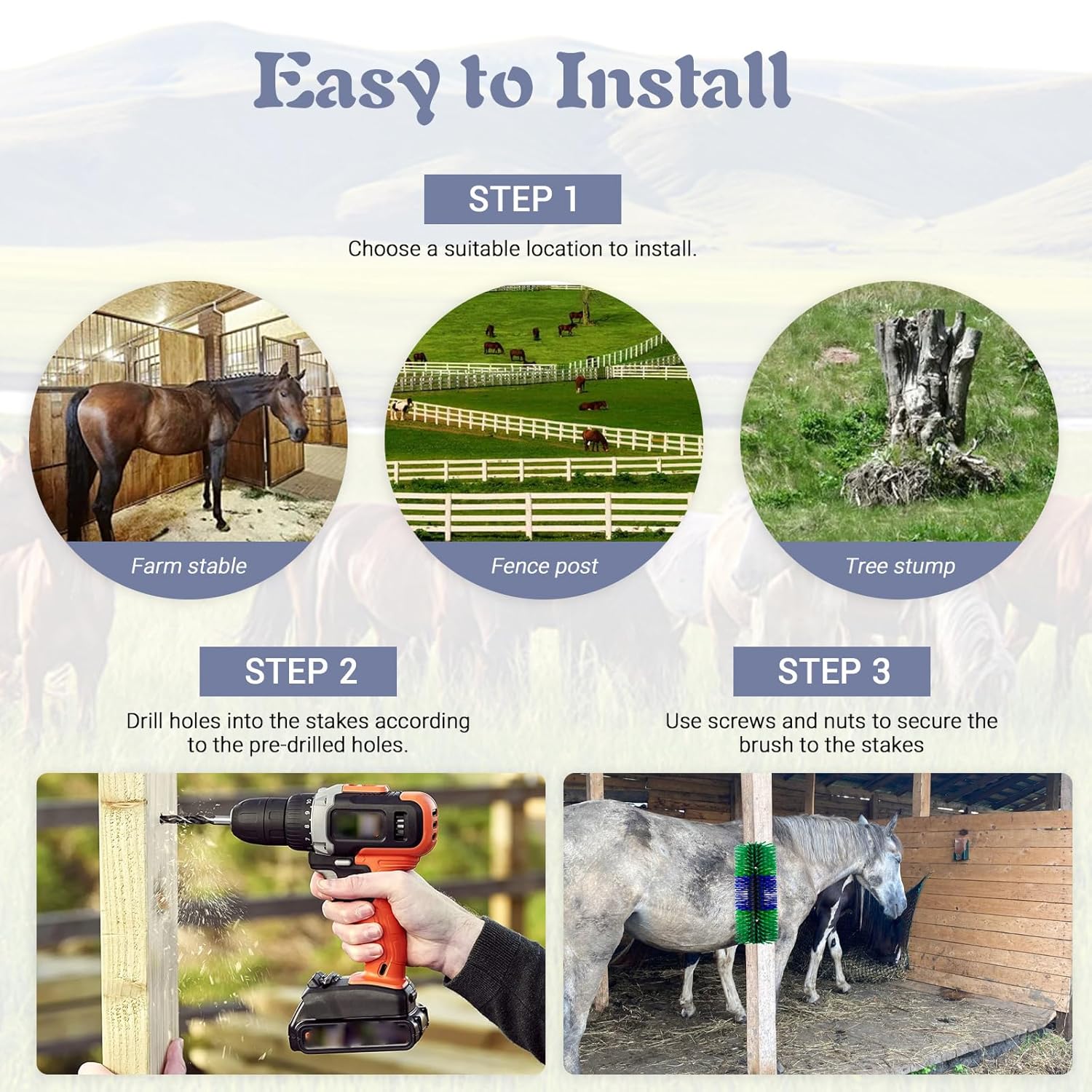 • Top quality: The livestock scratching brush is durable and can withstand over 1000 pounds of horses leaning on it. Brushes are hard enough to relieve itching, but they are not sharp enough to harm animals or damage their skin or tails.