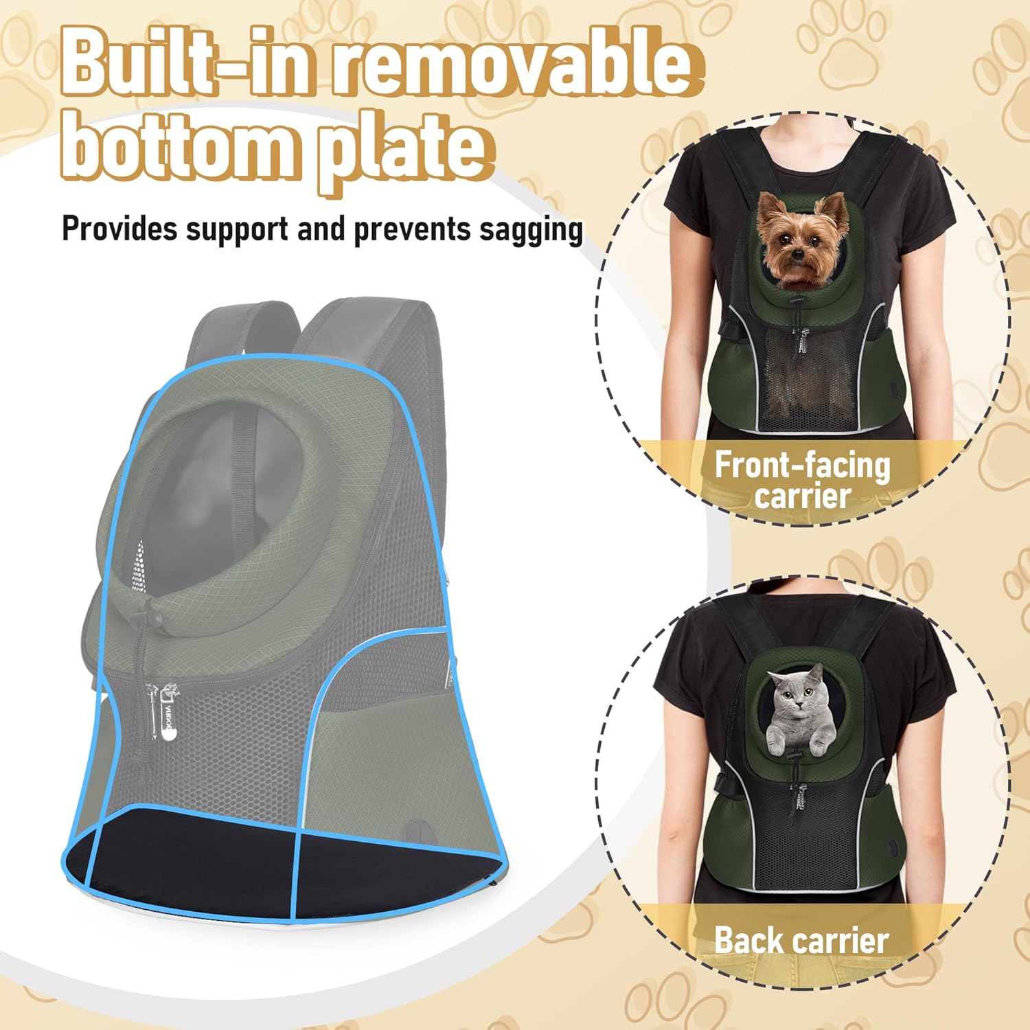 WOYYHO Pet Dog Carrier Backpack Small Dog Front Backpack Ventilated Mesh Dog Travel Back Pack with Safety Belt for Travel Hiking Cycling Outdoor Adventures (Size S: 2-4.5 lbs, Army Green)
