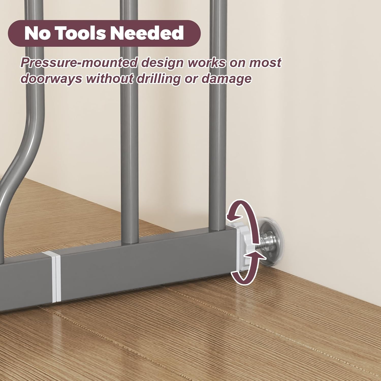 • Tool-Free Installation: The pressure-mounted gate for baby & pet provides a secure hold while protecting your walls and doorways from damage, ideal for renters and hassle-free setups. The pet gate indoor offers a quick, temporary solution that's both safe and convenient.