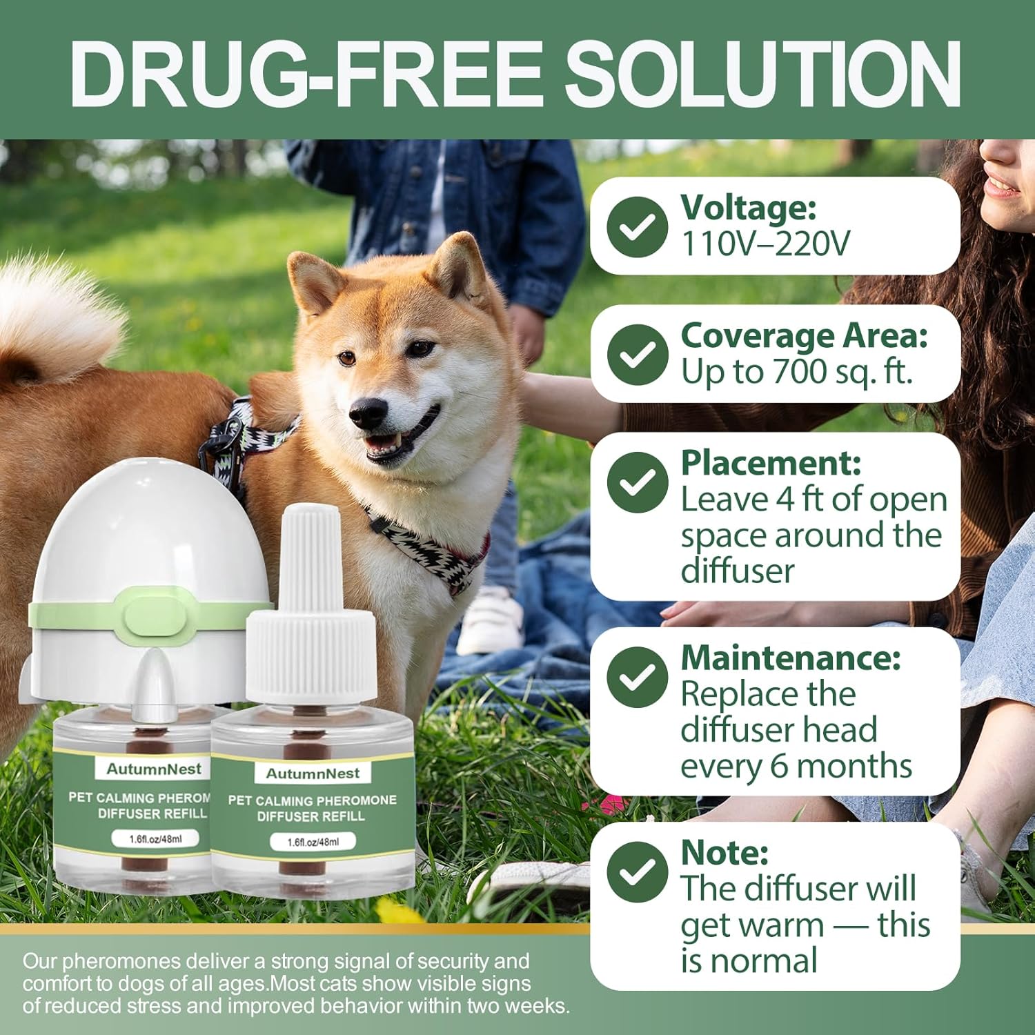 • 【Complete 3 Refill + Plug Kit for Long-Lasting Effect】 Includes one diffuser and three refill bottles (48ml each), giving up to 90 days of continuous behavioral support to help your dog stay calm and comfortable.