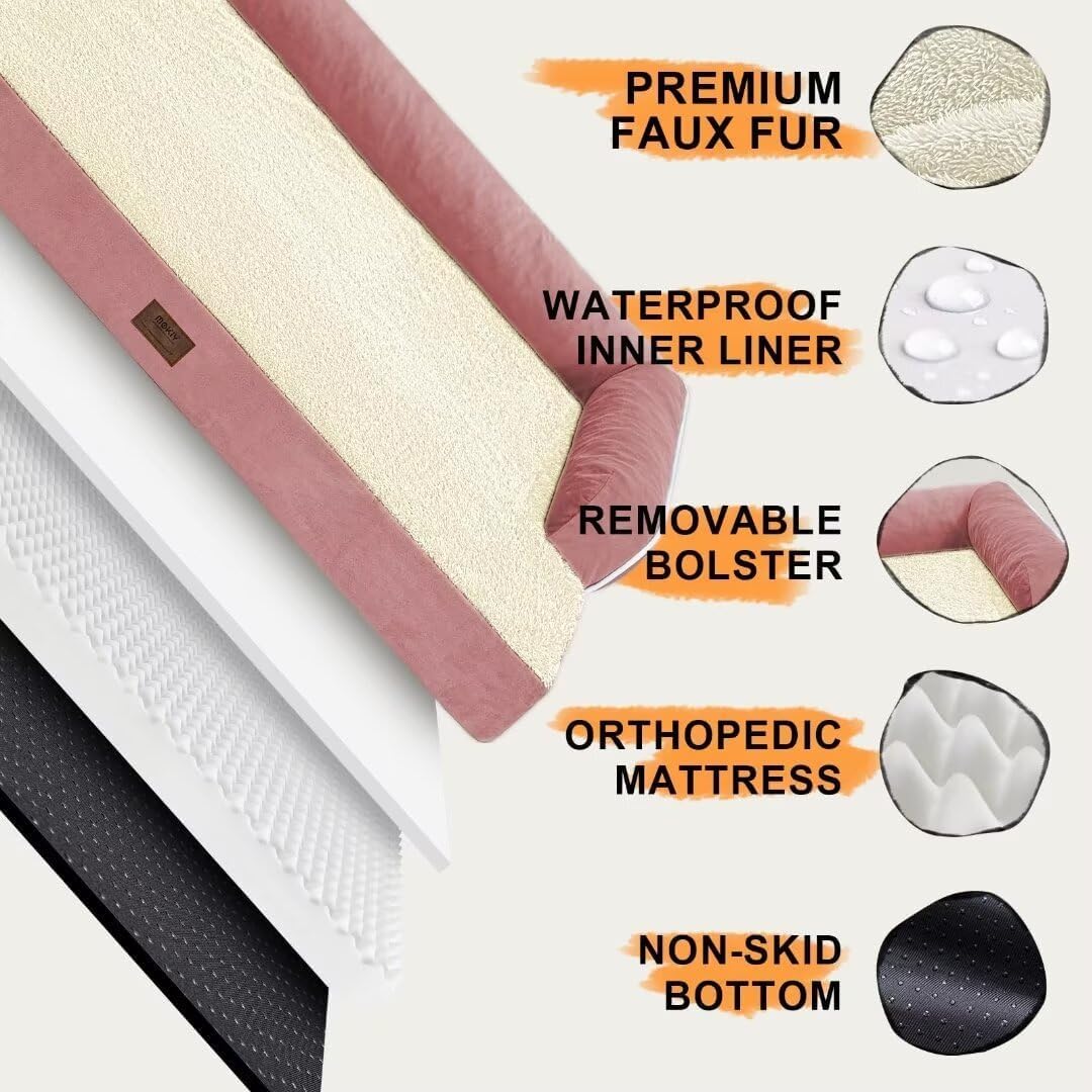 Dog Bed Medium Size Dog-Orthopedic Waterproof Bed for Dogs,Foam Couch Sofa with Washable Removable Cover & Non-Slip Bottom-Pink