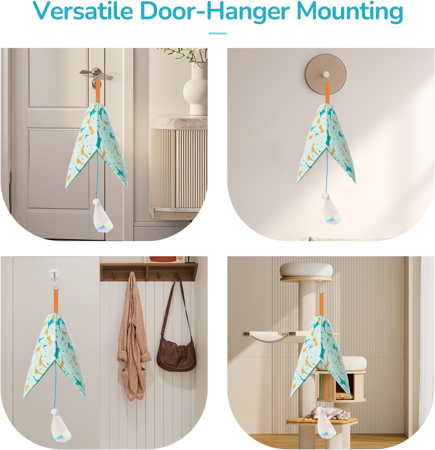 • Door-Hanger Delight: Easily attach it to a door handle! This unique position creates a fresh, exciting challenge that strongly appeals to your cat's curiosity, offering a novel way to play with interactive cat toys for indoor cats.