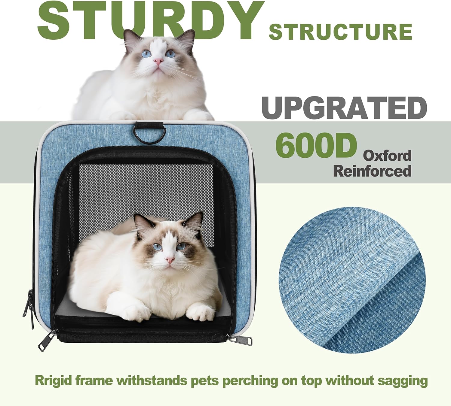 • Escape-Resistant - Self-locking zipper sliders prevent clever kitties from opening this animal carrying bag from the inside while traveling. Reinforced 600D oxford fabric prevents anxious cats or little dogs from claw damage