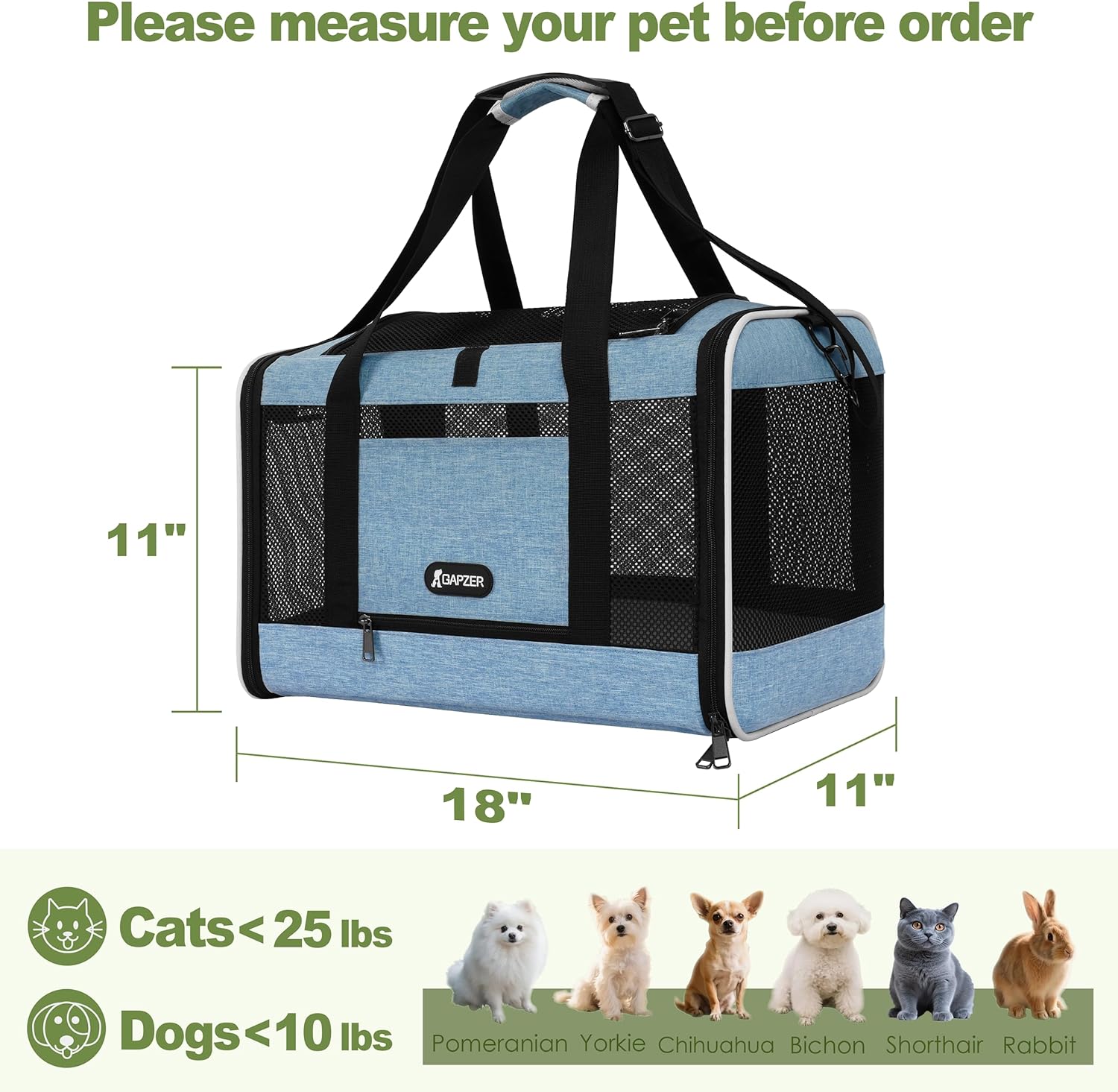 • Spacious Soft-Sided Pet Carrier - 18x11x11 inch crate comfortably fits medium size pets, such as cats weighing 15-25 lbs or 10 pounds small dogs like Yorkies & Shih Tzus with room to stretch