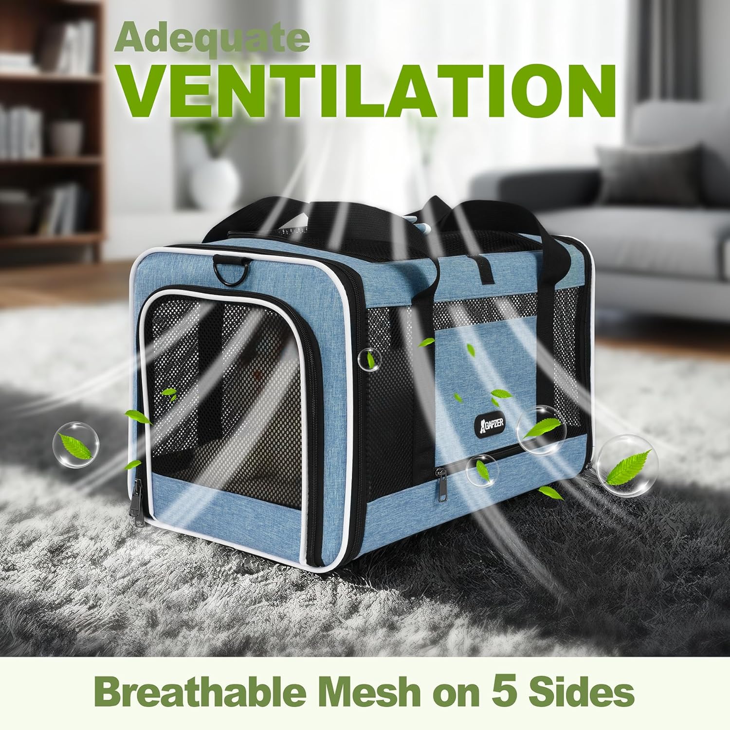 • 360° Ventilation & Dual-Entry - Four-sided mesh ensure constant airflow during transport, while the wide top opening and side door facilitate stress-free transfers and quick check-ins for rabbits and puppies