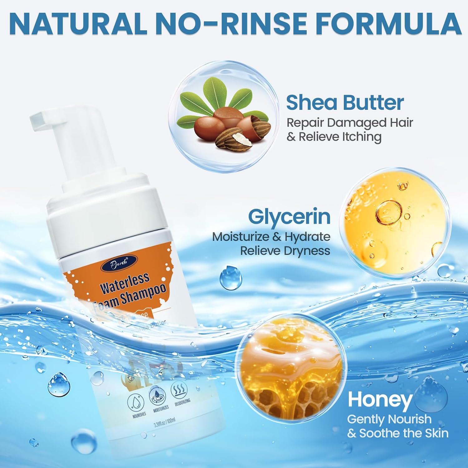 • The term "Waterless" in Waterless Shampoo doesn't mean that there is no water in the product's formula. Instead, it refers to the convenience that after applying this shampoo, there is no need to rinse your pet‘s fur with water. Compared to regular pet shampoos, which usually require thorough rinsing, our Waterless Shampoo saves you time and effort, making the grooming process simpler and more efficient.
