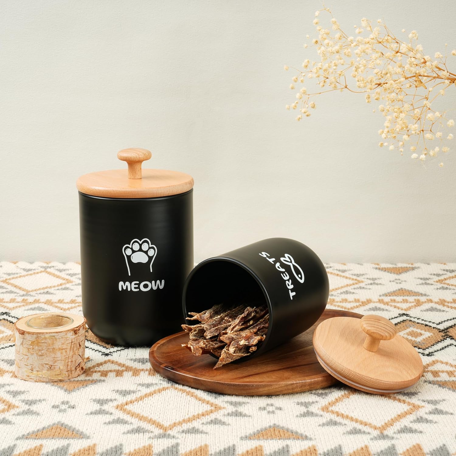 • Airtight Wooden Lids for Freshness – Equipped with airtight lids and stylish wooden tops, these cat treat jars for kitchen counter effectively block air and moisture, keeping your pet's treats fresh and crunchy. No more worries about stale or spoiled snacks—every bite stays delicious!