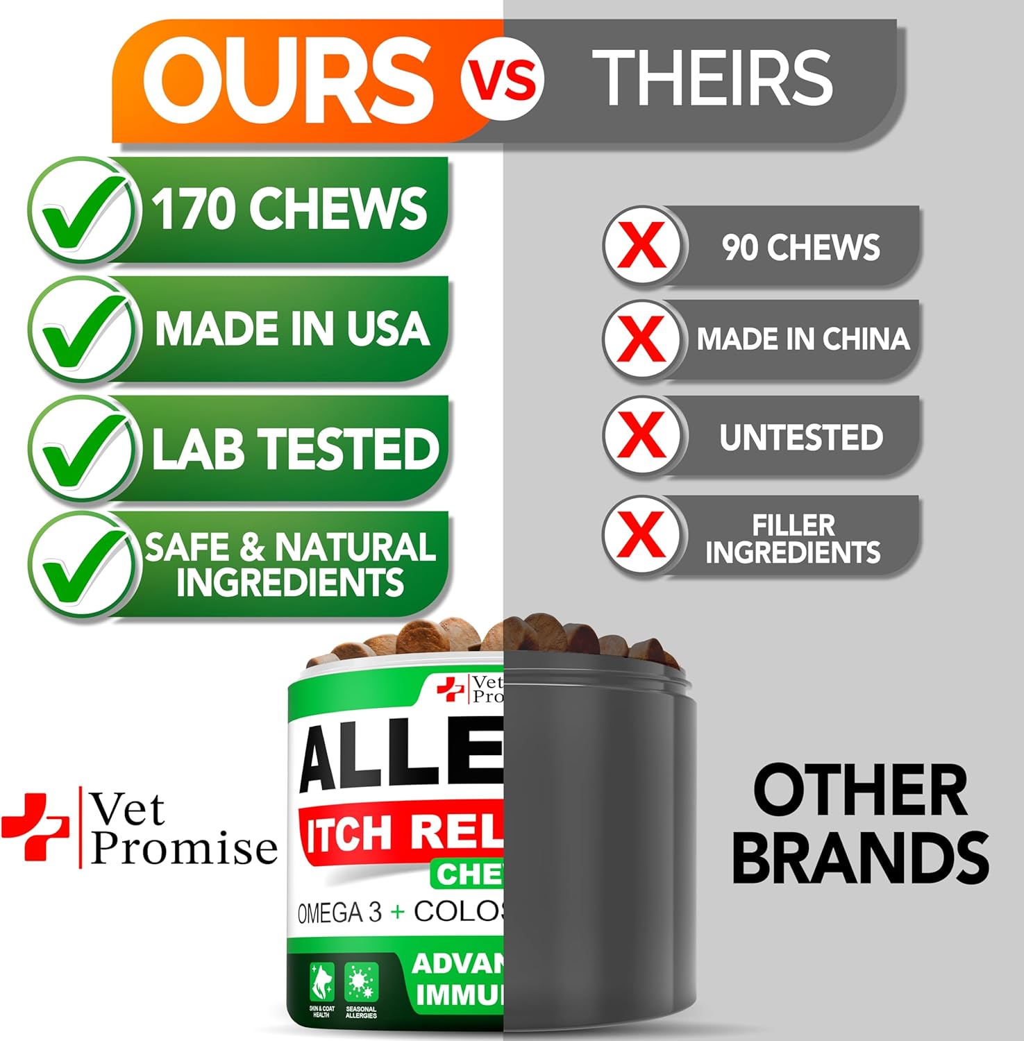 Dog Allergy Relief Chews - 170 Dog Allergy Chews - Itch Relief for Dogs - Anti Itch for Dogs - Dry & Itchy Skin - Allergies & Immune Support Supplement, Omega 3 Fish Oil, Colostrum - Made in USA