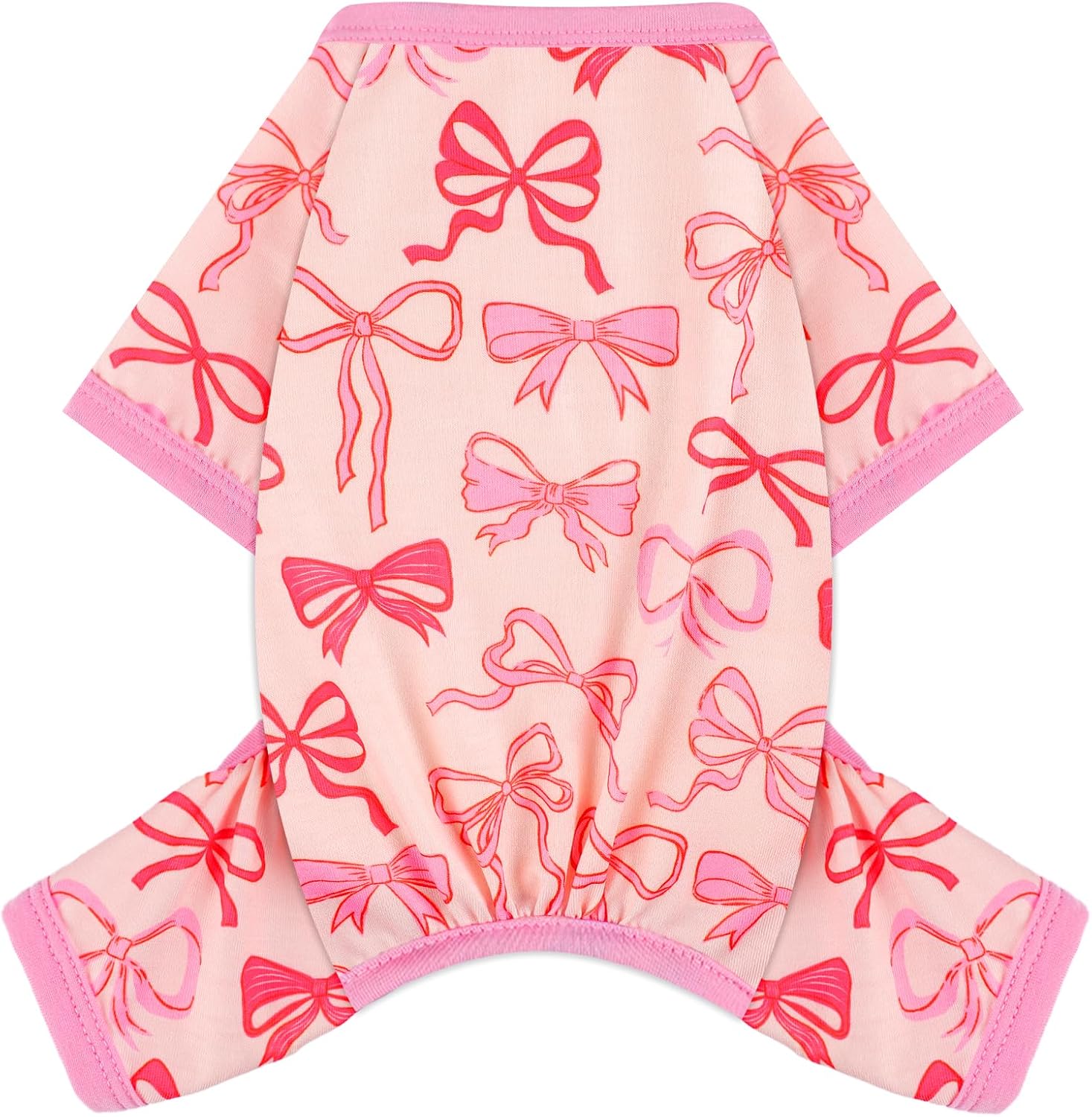 Dog Pajamas Small Sized Dogs Stretchable Summer Dog Clothes Pjs 4 Legs Girl Boy Cute Soft Puppy Outfits Doggie Cat Jammies Jumpsuit Sleeper for Pet (Bow Tie, Small)