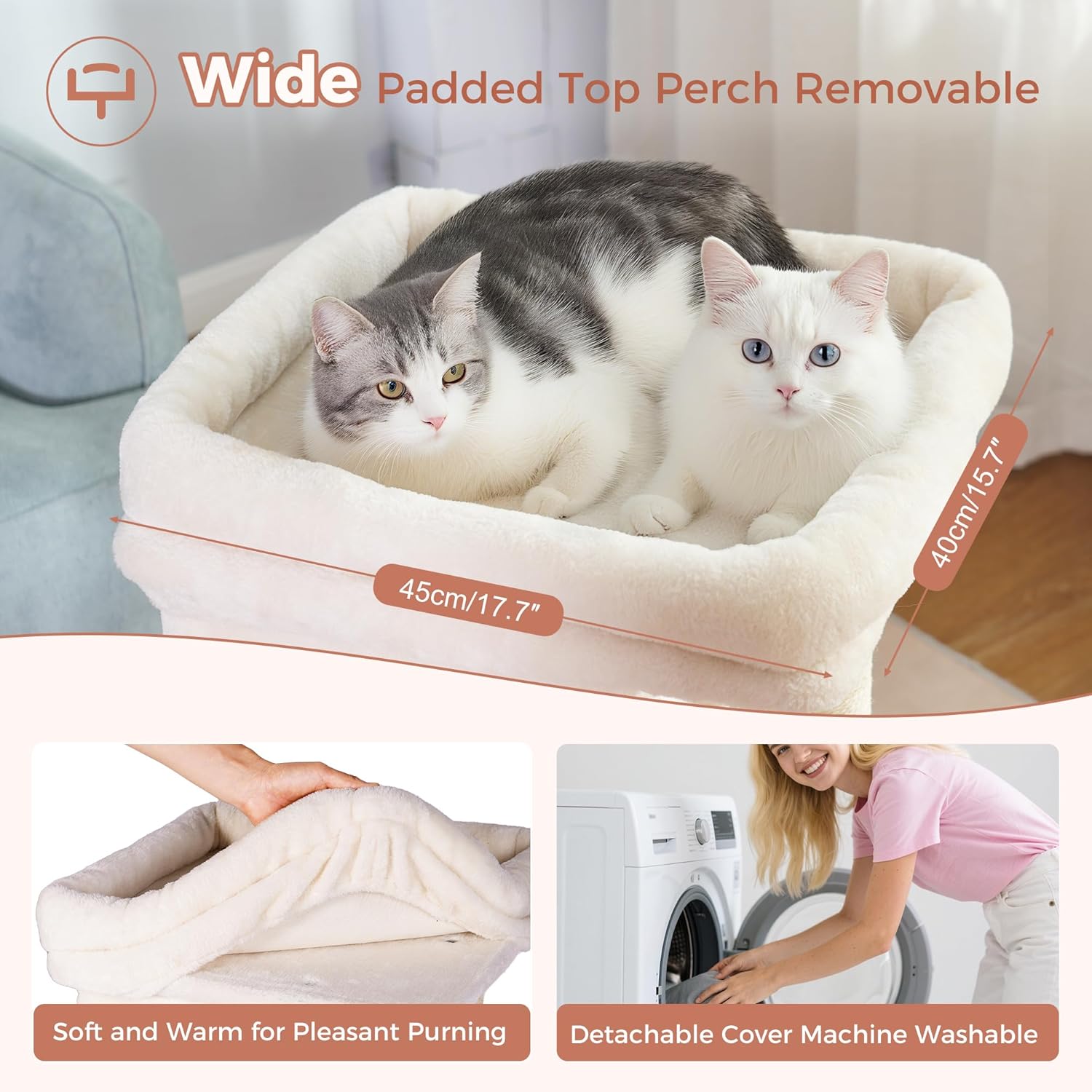 • Spacious Comfort and Easy Maintain: Our cat tree bed measuring a generous size at 16.5" x 16.5", is perfect for accommodating your big-boned kitty or even two medium-sized cats who love to snuggle up together. The plush padded cushion provides a cozy support for your cats to rest their furry heads, ensuring maximum comfort during their naps. The removable design help it easy to take off and makes cleaning a breeze.