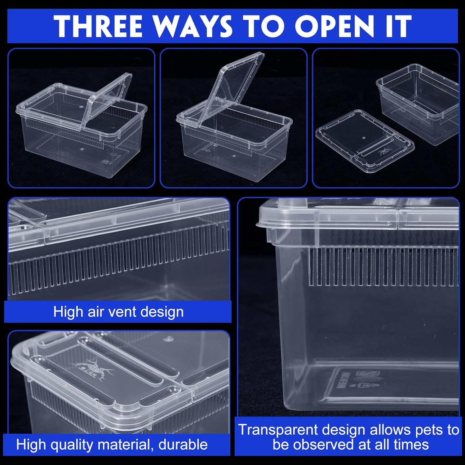 • Clever Design: this plastic terrarium is designed with multiple small air strips for ventilation, which not only ensures that crawling pets cannot escape the box, but also maintains the air circulation in the box; The double-opening design is convenient for raising pets or changing items in the box