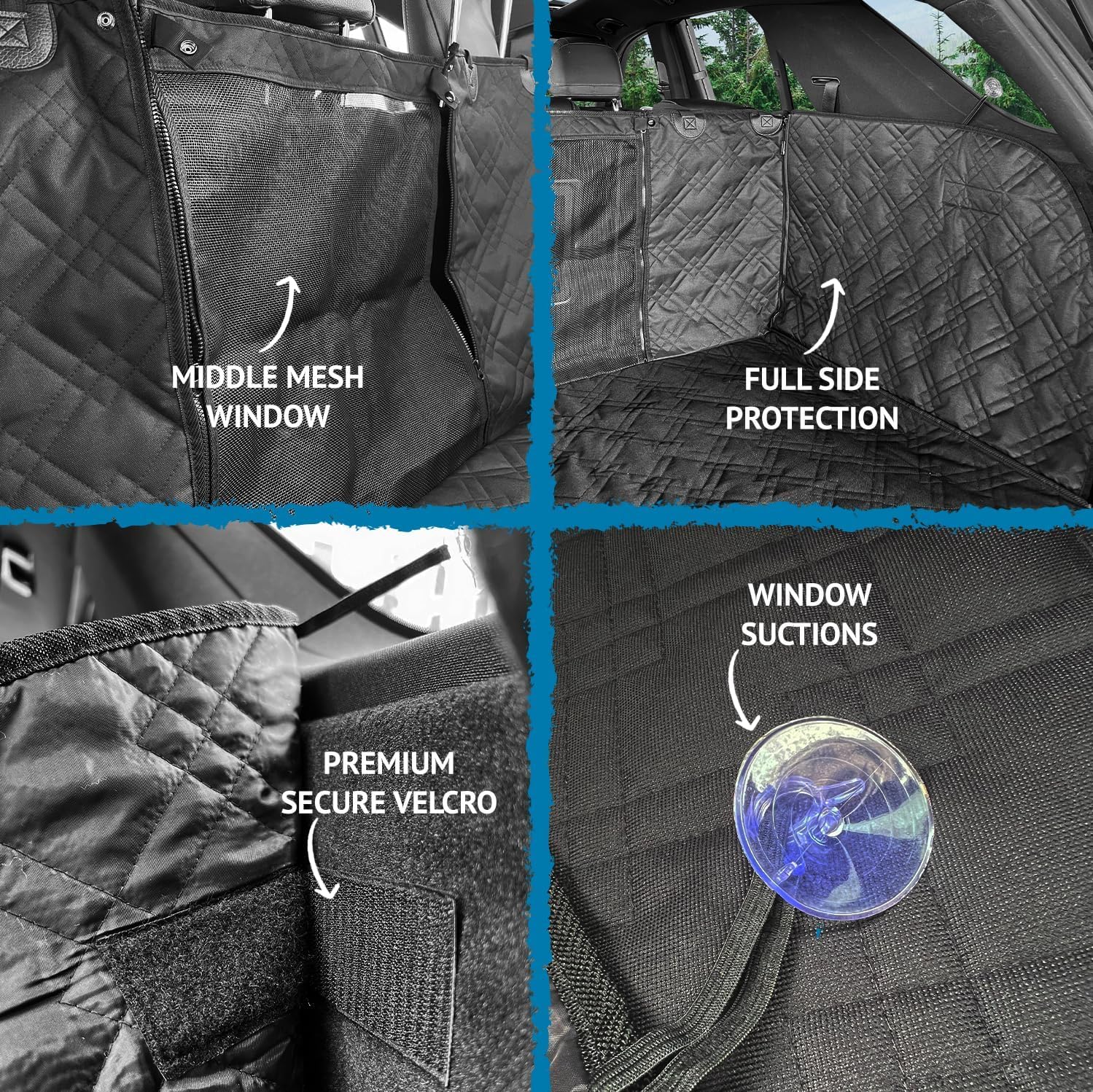 - Trunk Cover Protector: Defend your cargo and trunk area against dog hair, muddy paws, dirty debris, spills, stains, scratches, groceries, heavy equipment, beach sand, and other unwanted accidents. Bulldogology cargo liner for SUV includes full side protectors, zippers, mesh window, 60/40 option, and extra thick layers for all-around protection. Regardless of what your pet may put it through, our dog car seat covers are crafted with premium 600D GSM Oxford Material that Guarantees Satisfaction