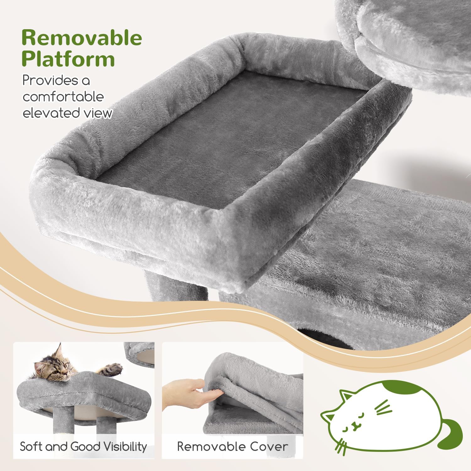 • SAFE AND STABLE: The thickened base and square design make it stable. We recommend using the anti-tipping straps provided with the cat tree for added stability