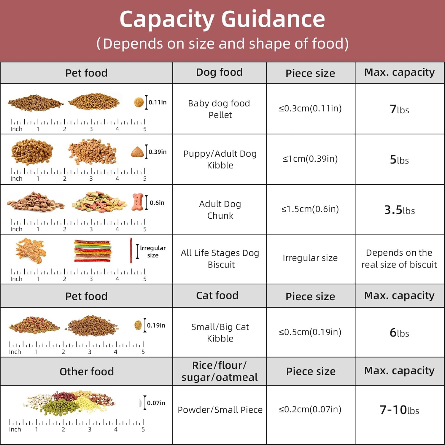 • MULTI-PUrRPOSE STORAGE:Our pet food container is suitable for storing dog food、cat food、bird seed、fish food、rice、 dry food、cereals、oats、cat litter 、flour and other large and small grains, as well as washing powder used at home. It is also a good choice.