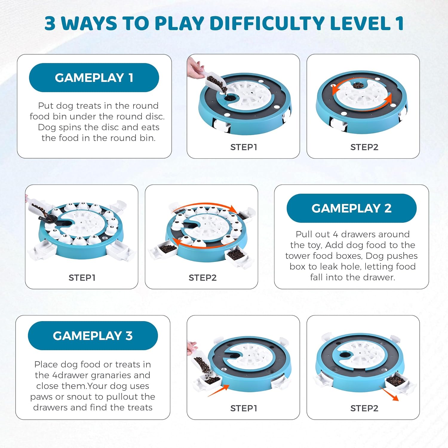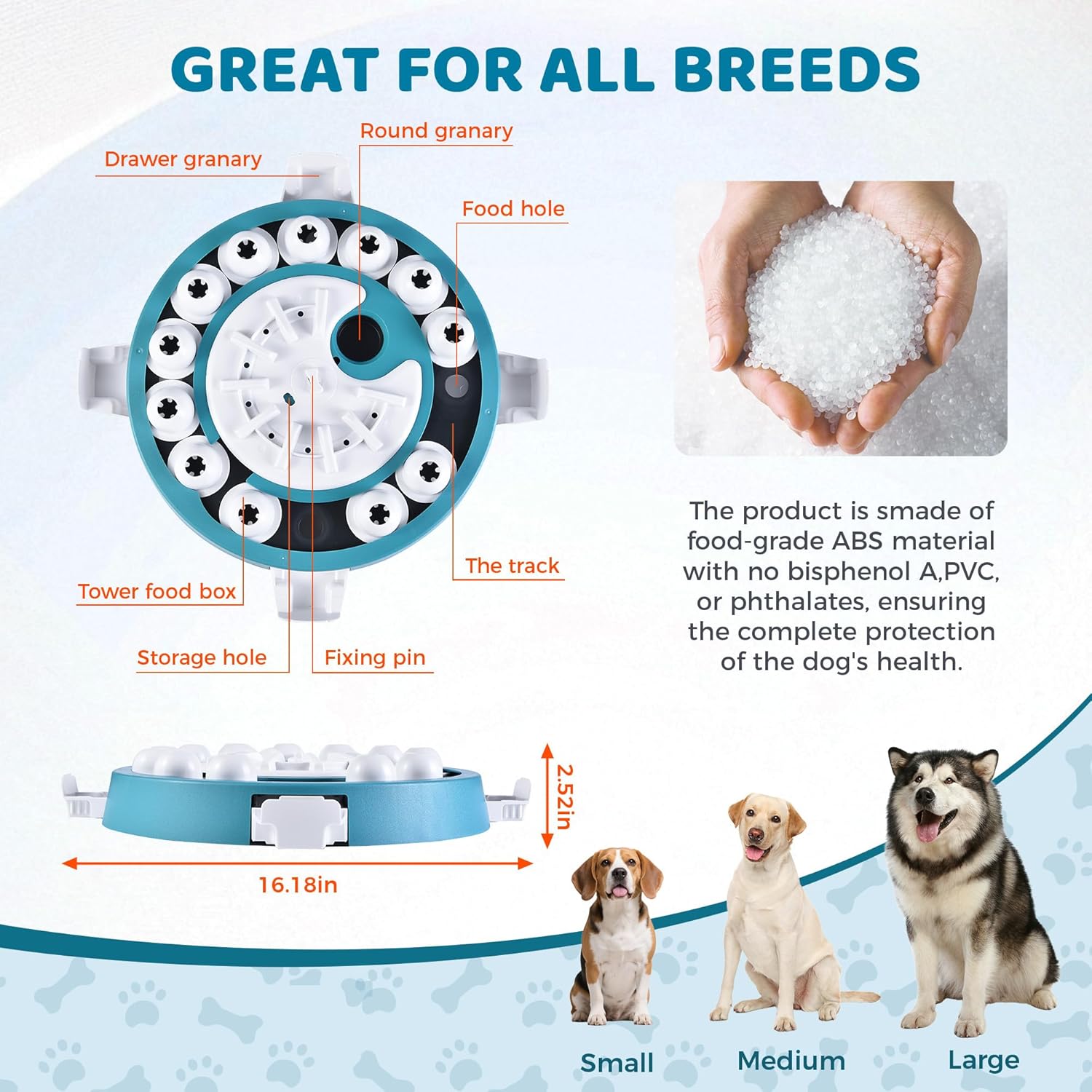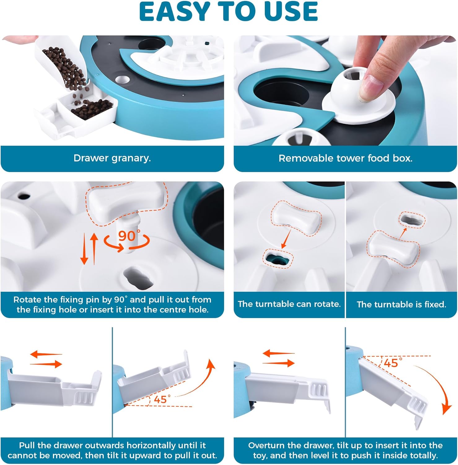 • Adjustable Challenges Levels - This puzzle toy can support multiple levels, from very easy to difficult, so you don’t have to buy multiple puzzle toys. This puzzle can alongside your dog's understanding, gradually increasing the challenge.