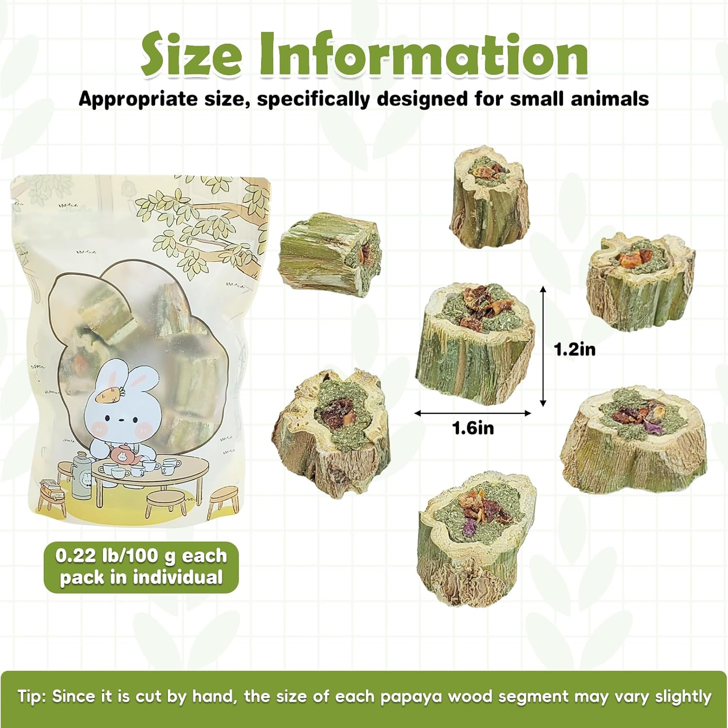 • Help with Teething: Rabbits' teeth grow continuously, and if they are not properly worn down, they may become too long, affecting their ability to eat and their health. Papaya wood rabbit chews are moderately hard, suitable for rabbits to grind their teeth and maintain dental health