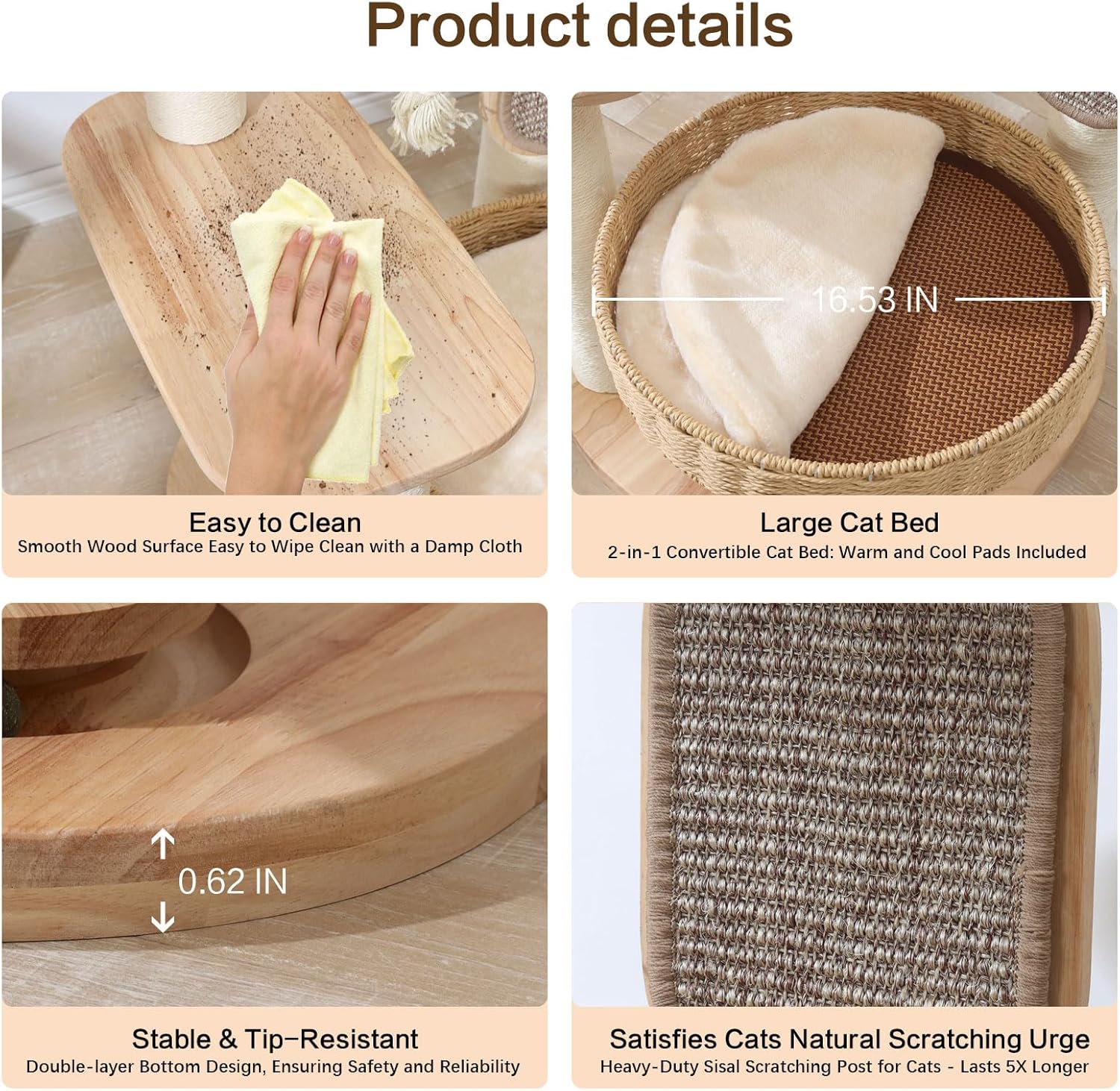 • 【Natural Materials】Crafted from pure rubber wood with 3" thick sisal posts and handwoven rattan nest. Natural sisal ropes satisfy cats' scratching needs while protecting furniture. Perfect for medium/large cats and multi-cat homes.