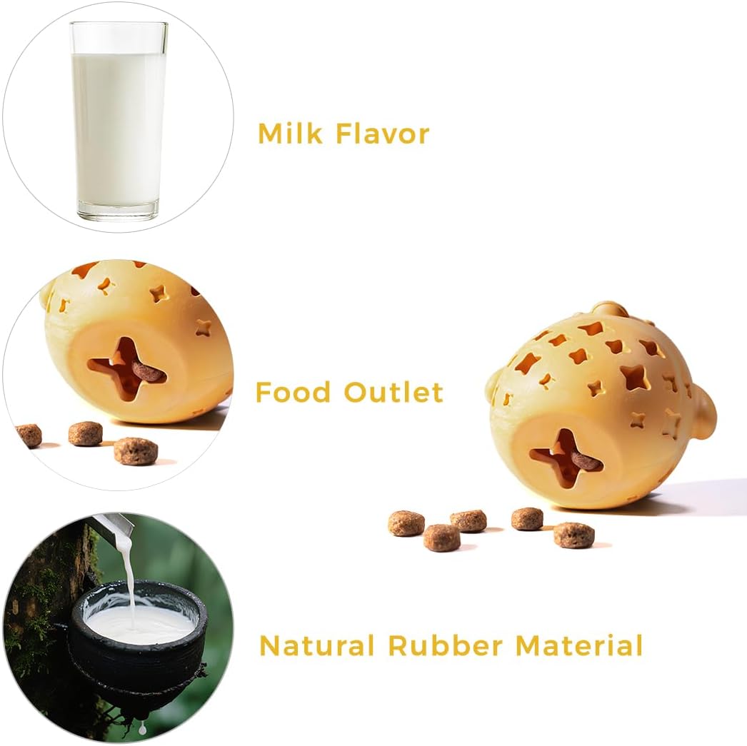 • Safe Material-Interactive dog toys made of non-toxic 100% natural rubber materials are safe for medium and large dog to chew and play. Milk flavor design makes dogs fall in love with cleaning his teeth.