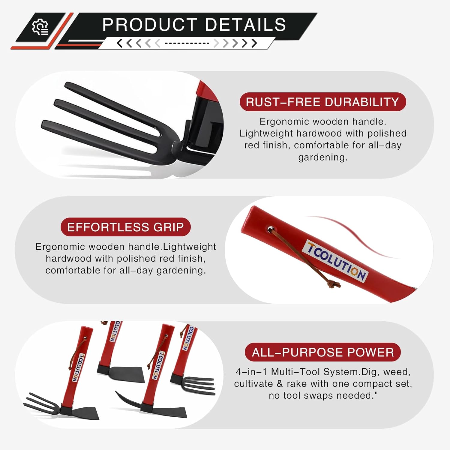 • Ergonomic Textured-Grip Handles: Wooden handles with textured coating enhance control during light gardening tasks. Minimizes slipping and reduces palm fatigue for sessions under 1 hour.