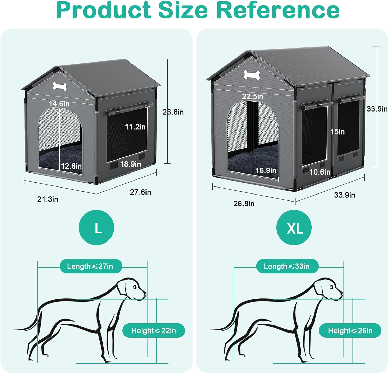 • Easy to Clean & Dry after Washing: The inner body of this dog house is made of 3-layer windproof and waterproof PVC coating wear-resistant Oxford cloth, which is resistant to dirt and easy to wipe. Also, you can use water pipe flushing and put the dog house in the sun to dry. Very convenient for daily use and clean