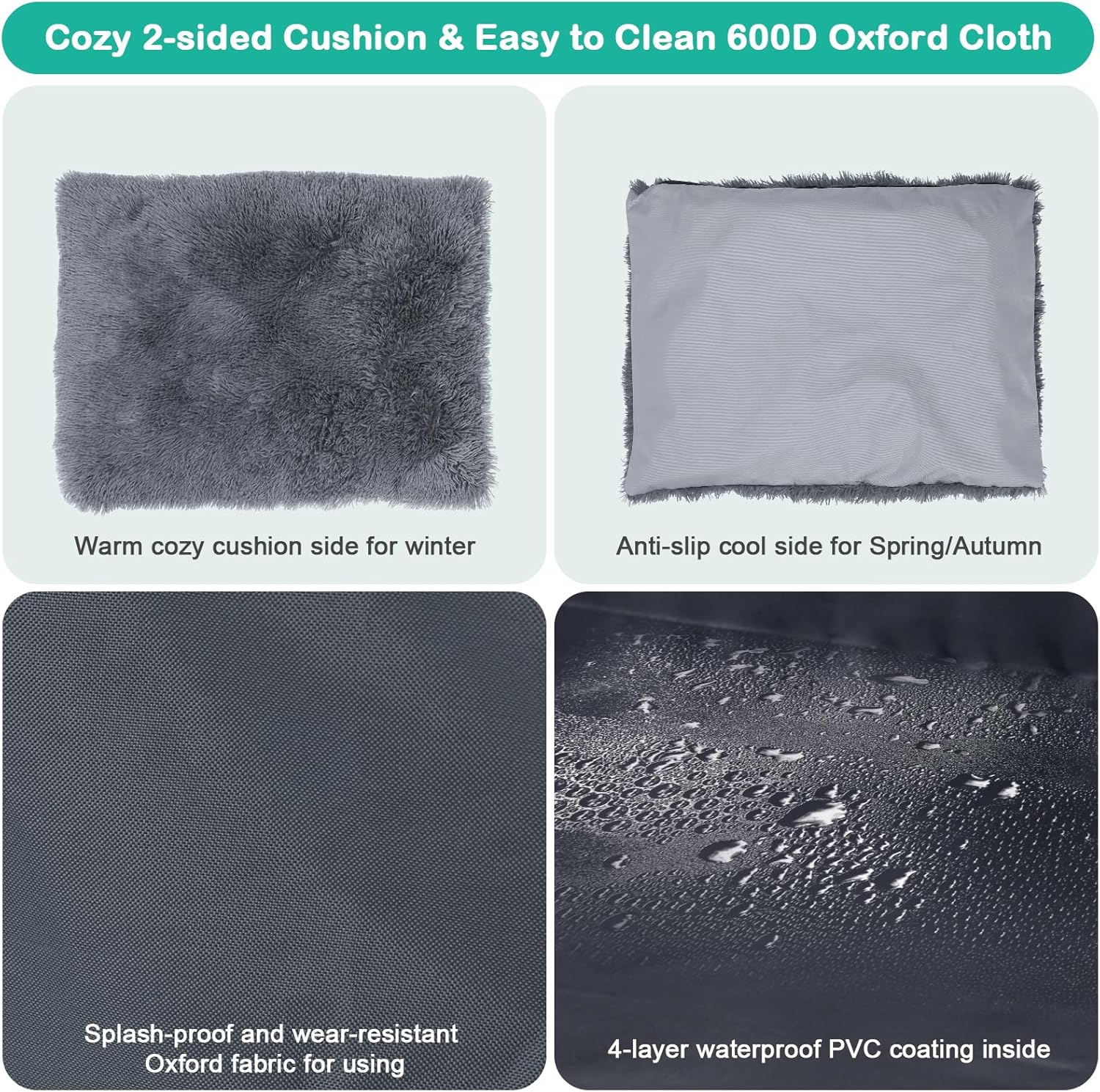 • Double-sided Cushion & Easy Installation: The cushion of this pet house is made of long velvet and oxford cloth, PP cotton. The Oxford cloth side is cool and scratch-resistant which is suitable for spring to autumn. While the velvet side is warm and cozy for winter. The cushion cover can be removed so it's easy to clean. Our products are easy to install. After testing, several of our colleagues spent less than 30 minutes to complete the assembly