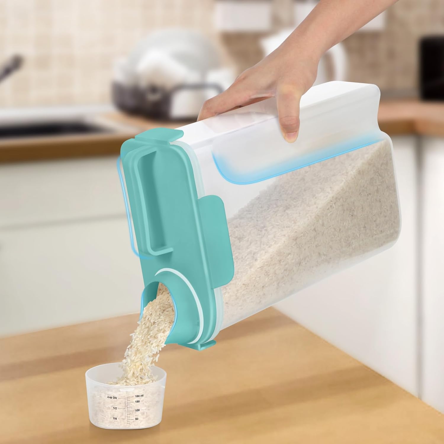 • VERSATILE FOOD STORAGE CONTAINER: This rice container with airtight spout lid is great for storing and dispensing rice, flour, cereal, beans, oats, nuts and much more