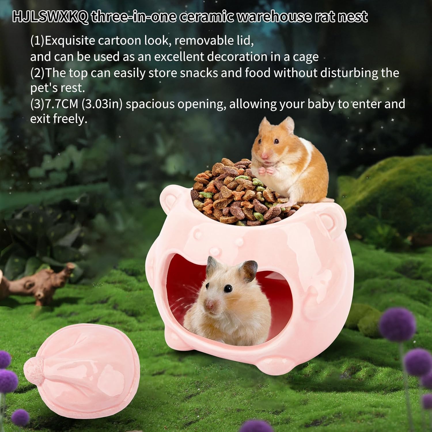 • 1. Spacious & Comfortable Hideout Measuring 5.12×5.12×4.33 inches, this ceramic hamster hideout provides ample space for Syrian hamsters, dwarf hamsters, pet rats, gerbils, and other small pets. The 1.97*3.03-inch (5*7.7cm) wide entrance easily accommodates larger breeds like Syrian hamsters. Pro tip: Measure your pet's size to ensure the perfect fit!